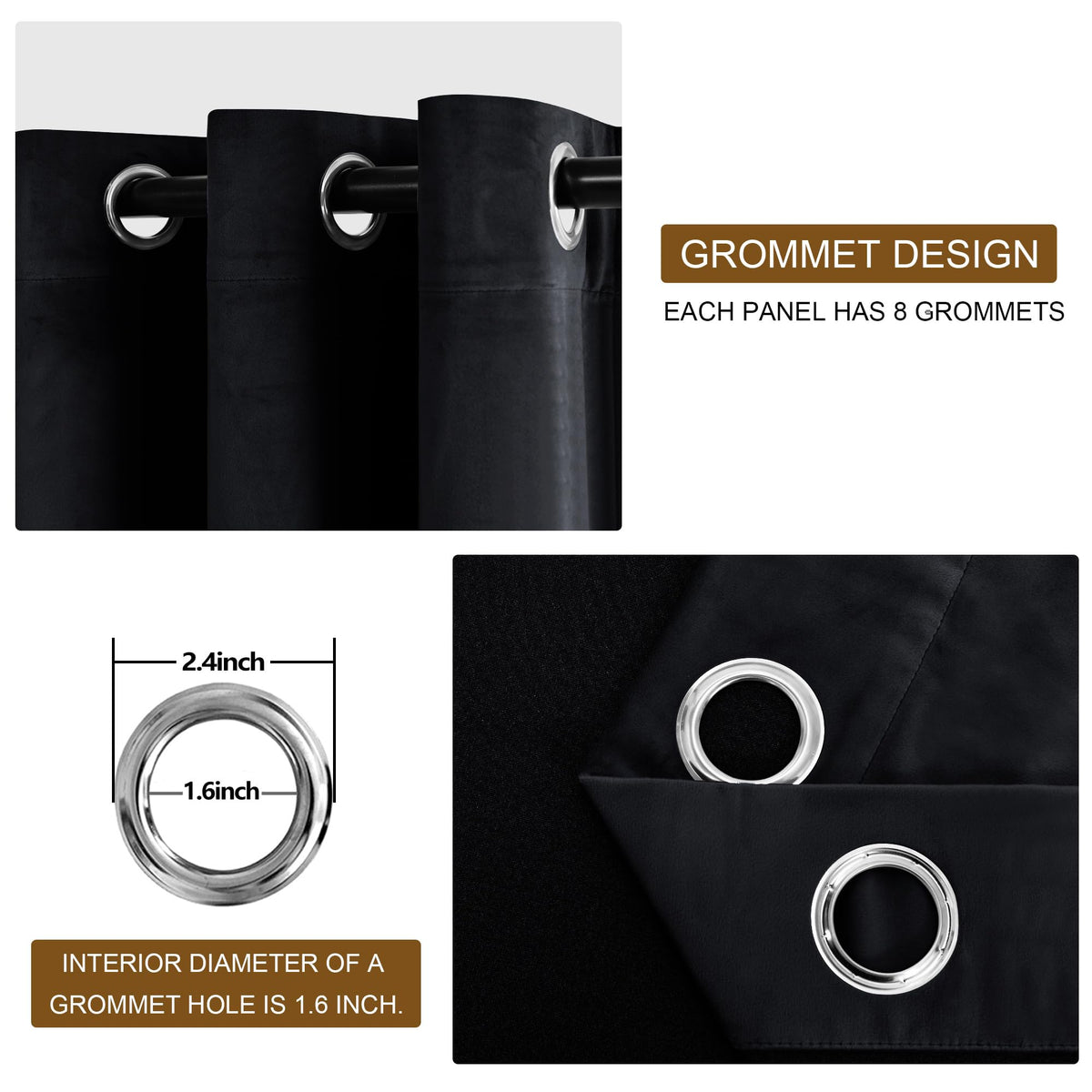Dwcn Black Blackout Velvet Curtains 84 Inches With Tiebacks - Elegant Heavy Duty Thermal Insulated Energy Efficiency Grommet Win