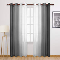 Dwcn Black Ombre Faux Linen Sheer Curtains - Gradient Semi Voile Grommet Top Bedroom And Living Room Curtains, 52 X 96 Inches Lo