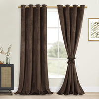 Dwcn Dark Brown Blackout Velvet Curtains - 96 Inches Long Dark Brown Refresh Bundleable Heavy Duty Thermal Insulated Grommet Win