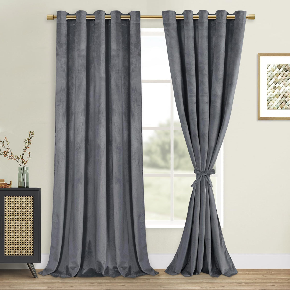 Dwcn Extra Wide Grey Velvet Curtains - 84 Inches Long Thick Grommet Tieable Window Treatments Blackout Room Darkening Privacy Pr