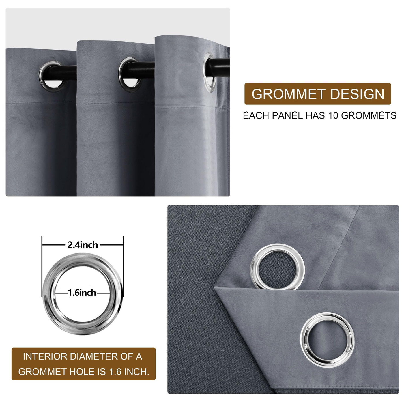 Dwcn Extra Wide Grey Velvet Curtains - 96 Inches Long Thick Grommet Tieable Window Treatments Blackout Room Darkening Privacy Pr
