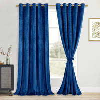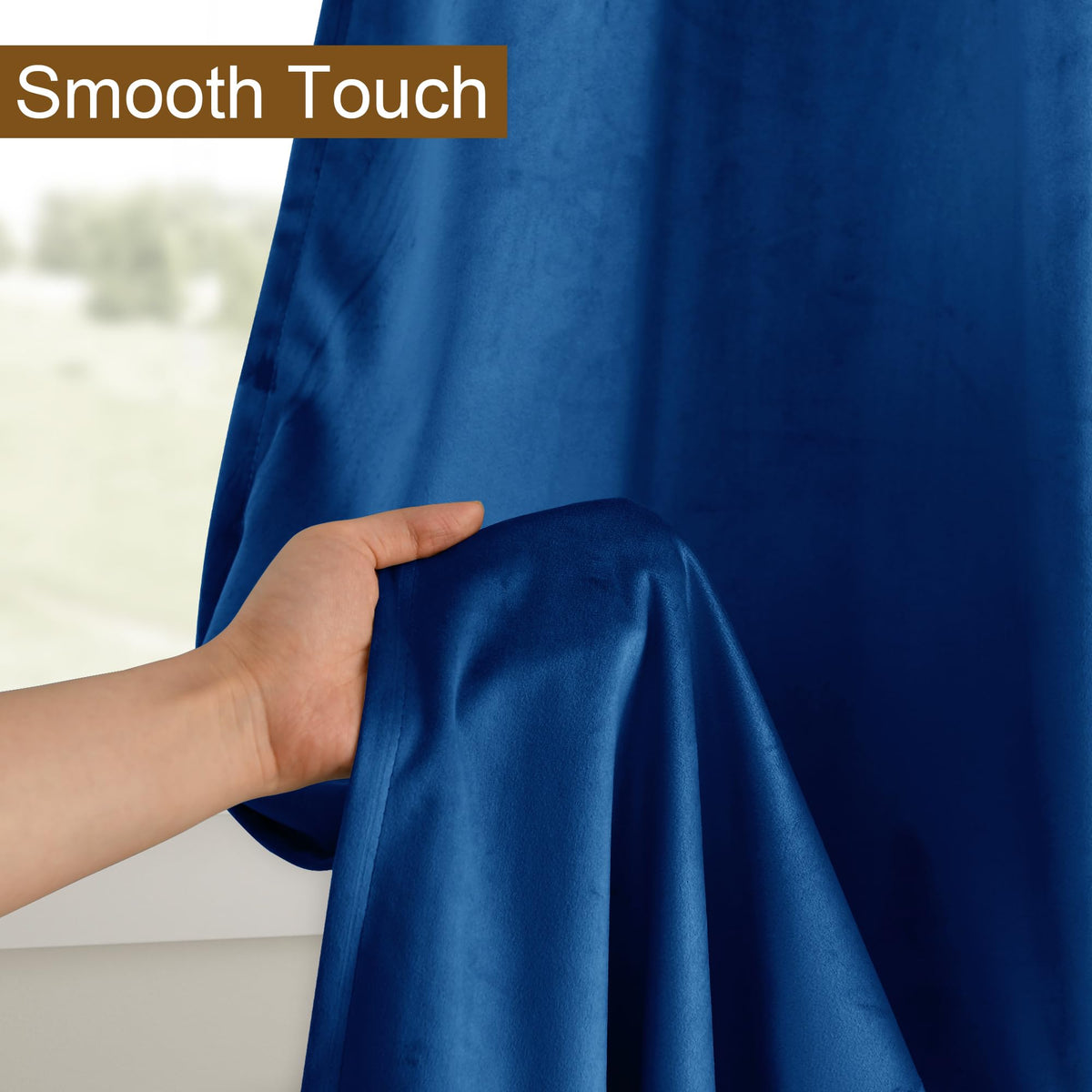 Dwcn Extra Wide Velvet Curtains - Blue Blackout Privacy Protect Window Drapes Thick Grommet Tieable Light Blocking Curtains & Dr
