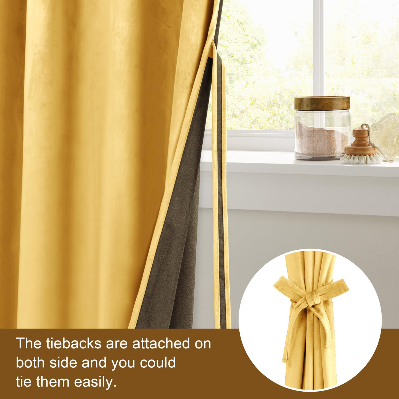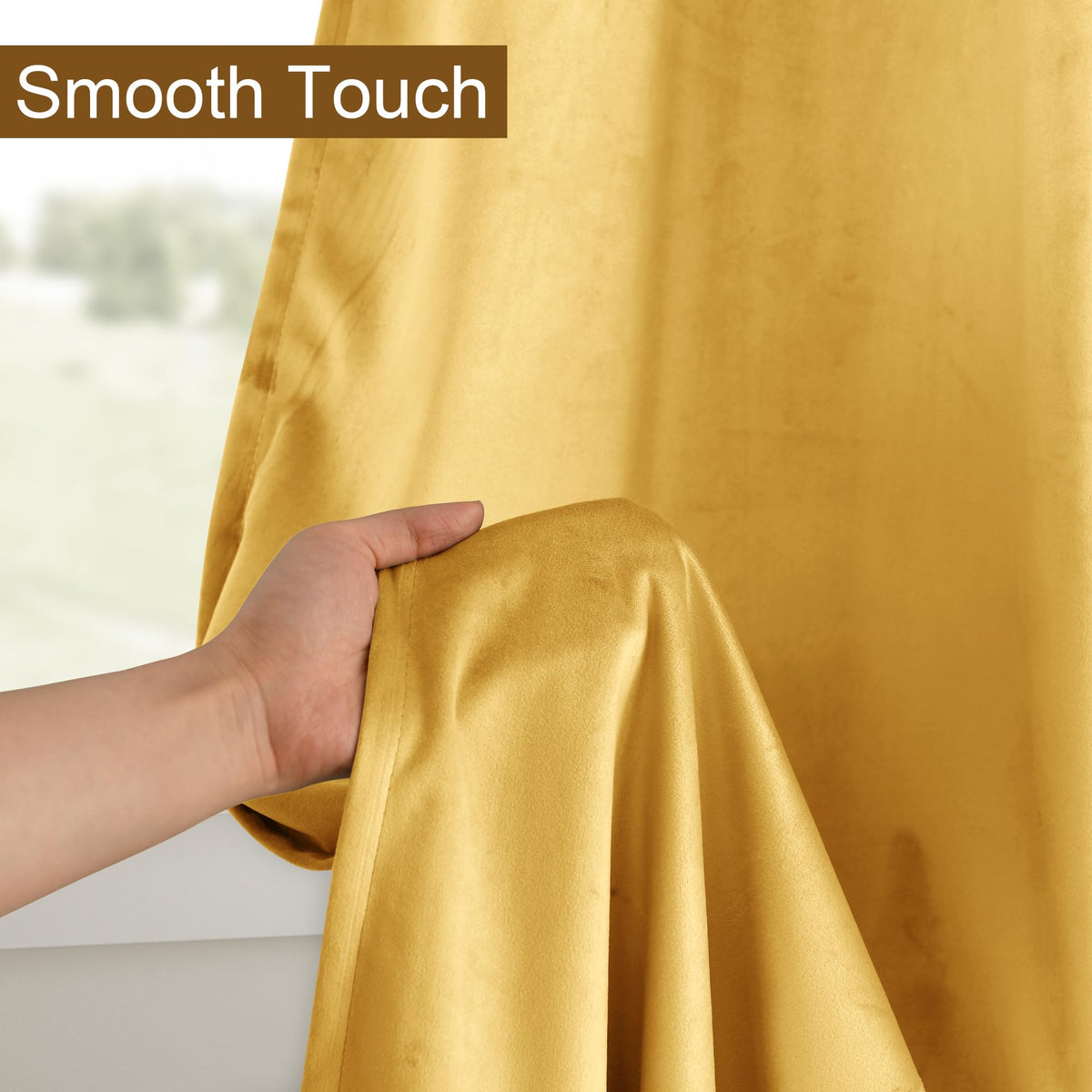 Dwcn Extra Wide Velvet Curtains - Yellow Room Light Blocking Protect Window Treatments Thick Grommet Tieable Privacy Drapes For