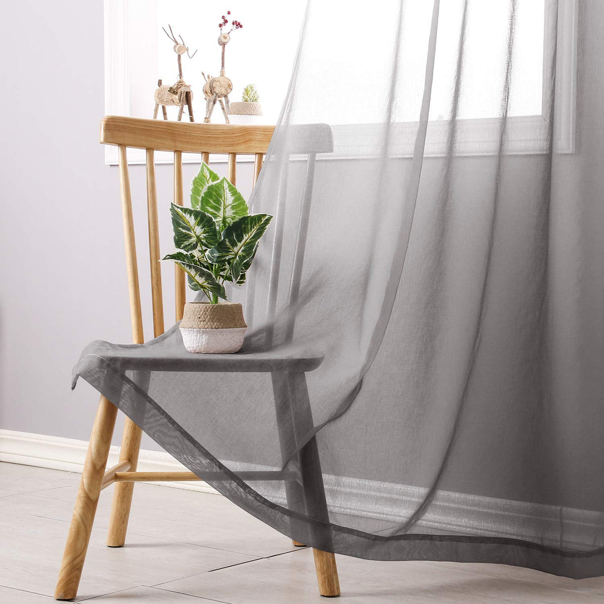 Q: What material are these curtains made from?A: The DWCN Faux Linen Grey Ombre Sheer Curtains are made from 100% polyester, which is tear-resistant, durable, and chemical-free, ensuring both quality and safety for your living space.