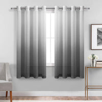 Dwcn Faux Linen Grey Ombre Sheer Curtains - Gradient Semi Voile Drapes Bedroom And Living Room Curtains, Set Of 2 Grommet Top Wi