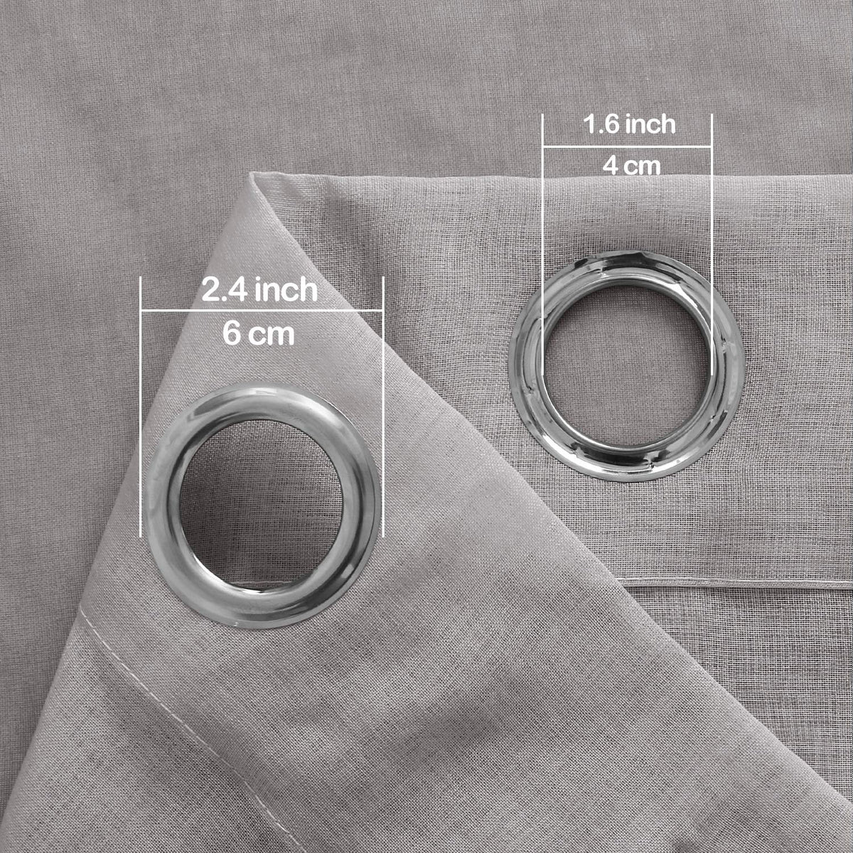 Q: What type of curtain rod is compatible with these curtains?A: These curtains feature 8 anti-rust silver grommets with a 1.6-inch inner diameter, making them suitable for 1.5-inch diameter curtain rods.