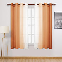 Dwcn Faux Linen Ombre Sheer Curtains - Fall Gradient Semi Voile Curtains For Bedroom And Living Room, Set Of 2 Grommet Top Windo