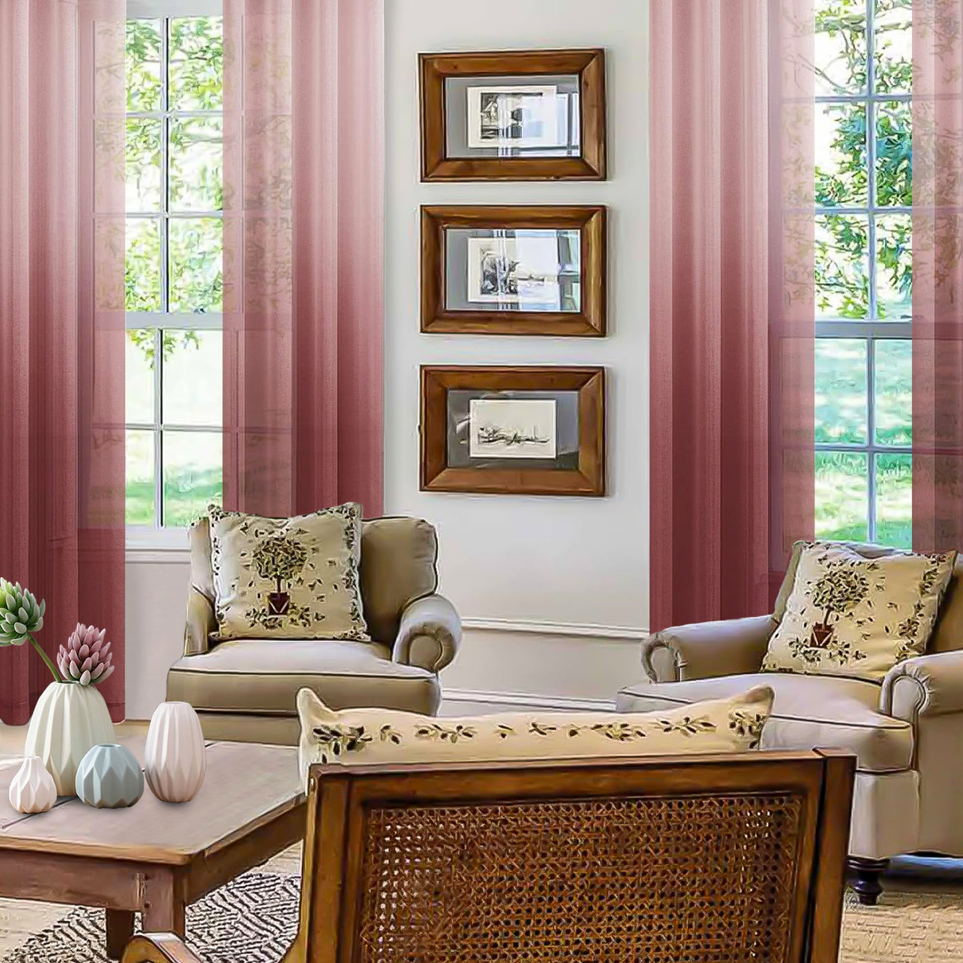 Q: Can I use these sheer curtains with blackout curtains?A: Yes, the DWCN Faux Linen Ombre Sheer Curtains can be hung separately or paired with other blackout curtains, allowing you to create a layered look while still enjoying the beautiful light diffusion they provide.