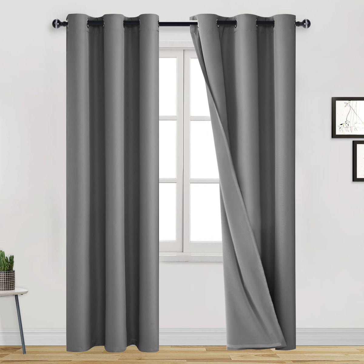 Dwcn Grey 100% Blackout Curtains 84 Inch Long 2 Panels For Bedroom Thermal Insulated Noise Reducing Curtain With Black Liner For