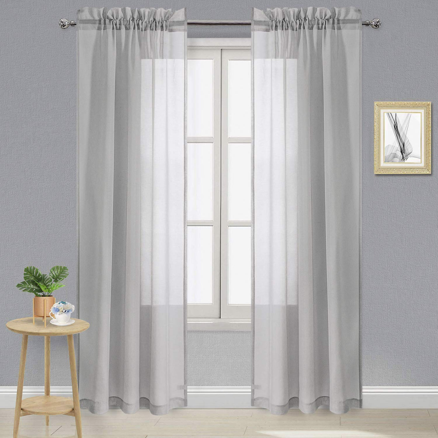 Dwcn Grey Sheer Curtains Semi Transparent Voile Rod Pocket Curtains For Bedroom And Living Room, 42 X 84 Inches Long, Set Of 2 P