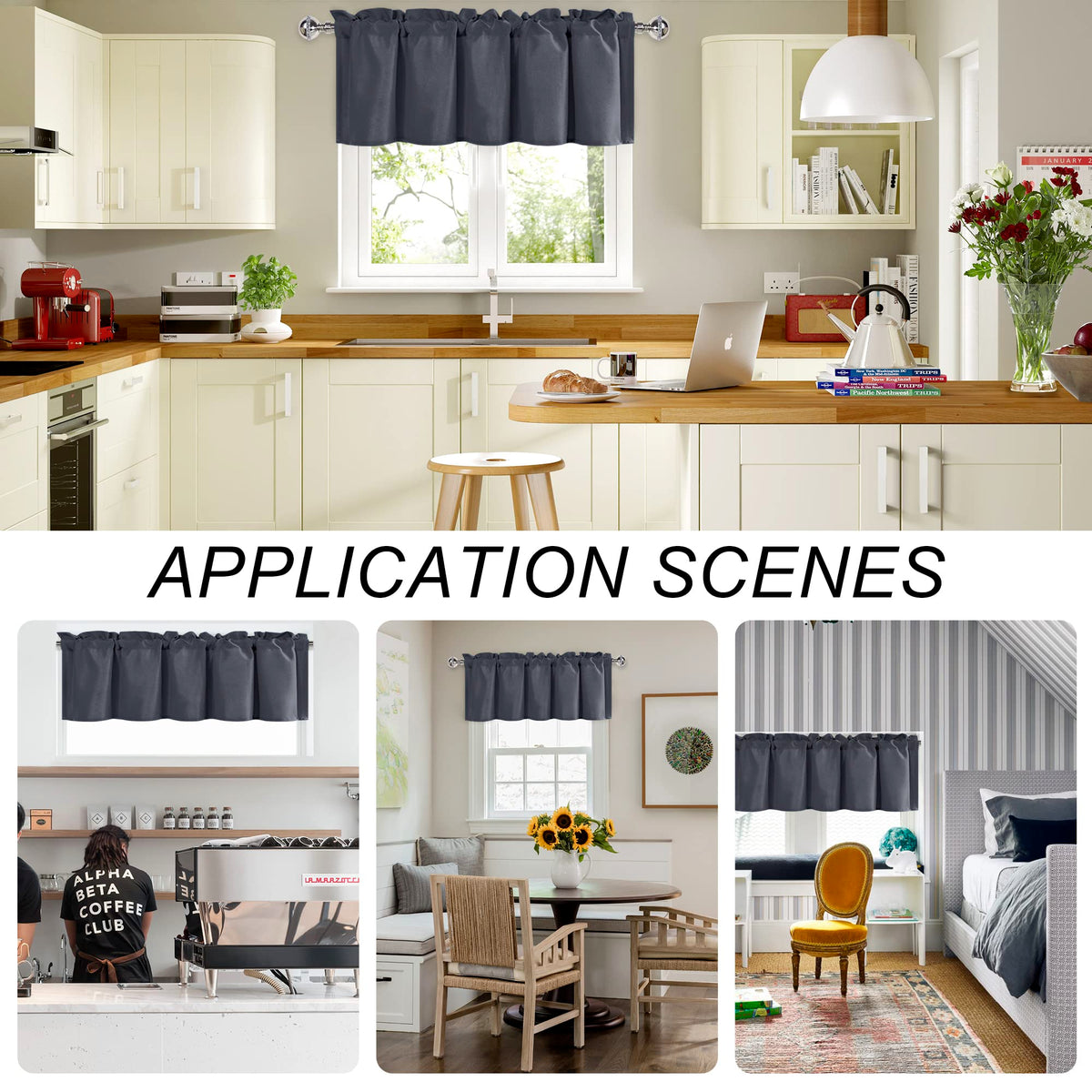 Q: Can this valance be used in different rooms?A: Yes, the DWCN valance is versatile and can be used in multiple settings including kitchens, bathrooms, basements, living rooms, and kids' rooms, enhancing the decor with its simple and elegant design.