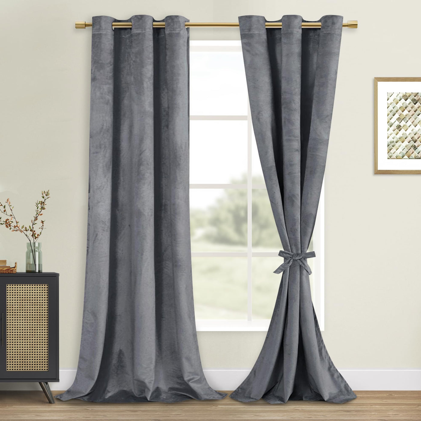 Dwcn Grey Velvet Curtains 84 Inches Long - Super Soft Tieable Grommet Blackout Thermal Insulated Curtain Panels, Window Drapes F