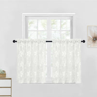 Dwcn Ivory White Floral Lace Short Curtains - Rod Pocket Window Voile Sheer Drapes For Kitchen Living Room Bathroom Small Window
