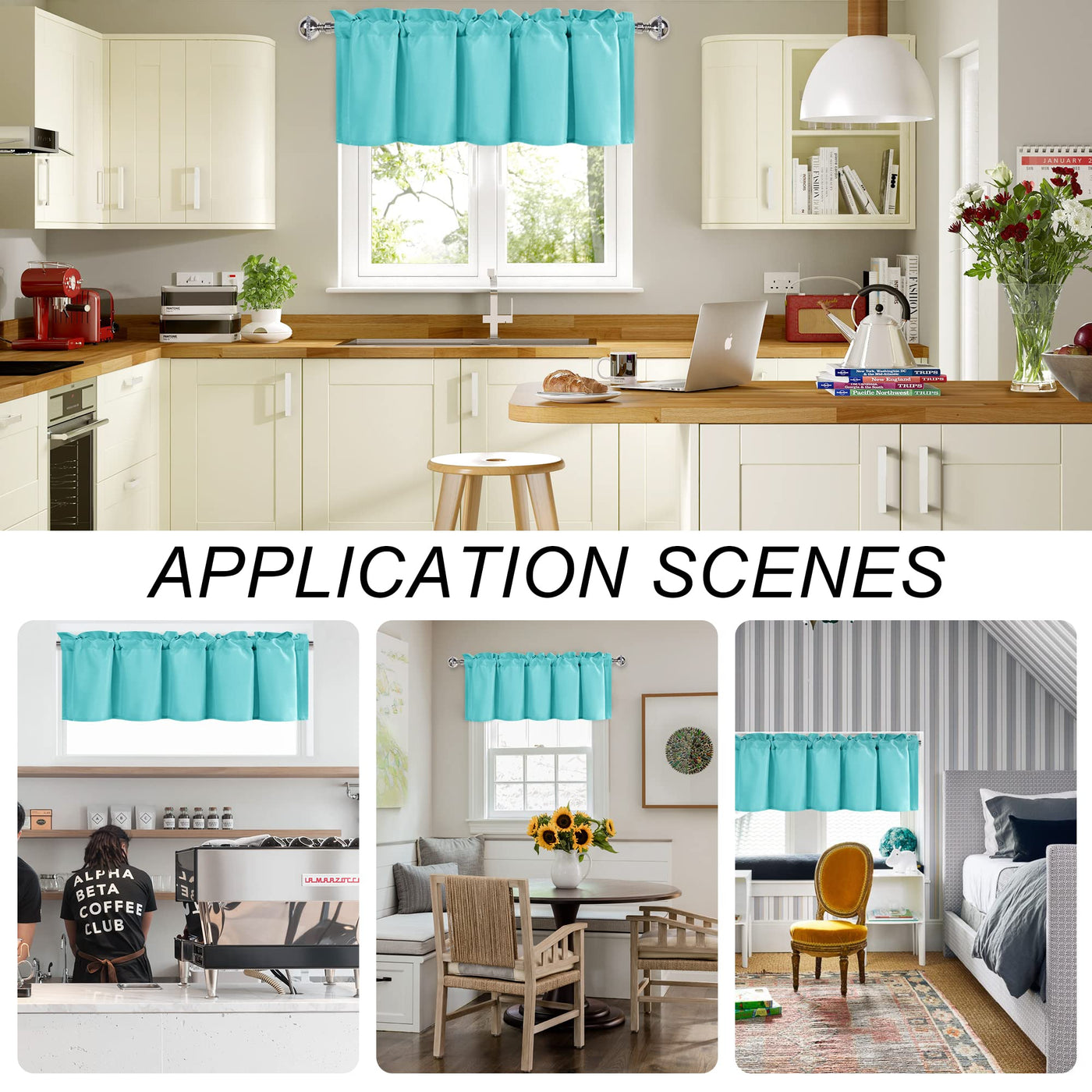 Dwcn Kitchen Valance For Windows, Aqua Valance Solid Short Topper, Bathroom/Basement Curtain Valance - 1 Panel, 52 X 18 Inch, Aq