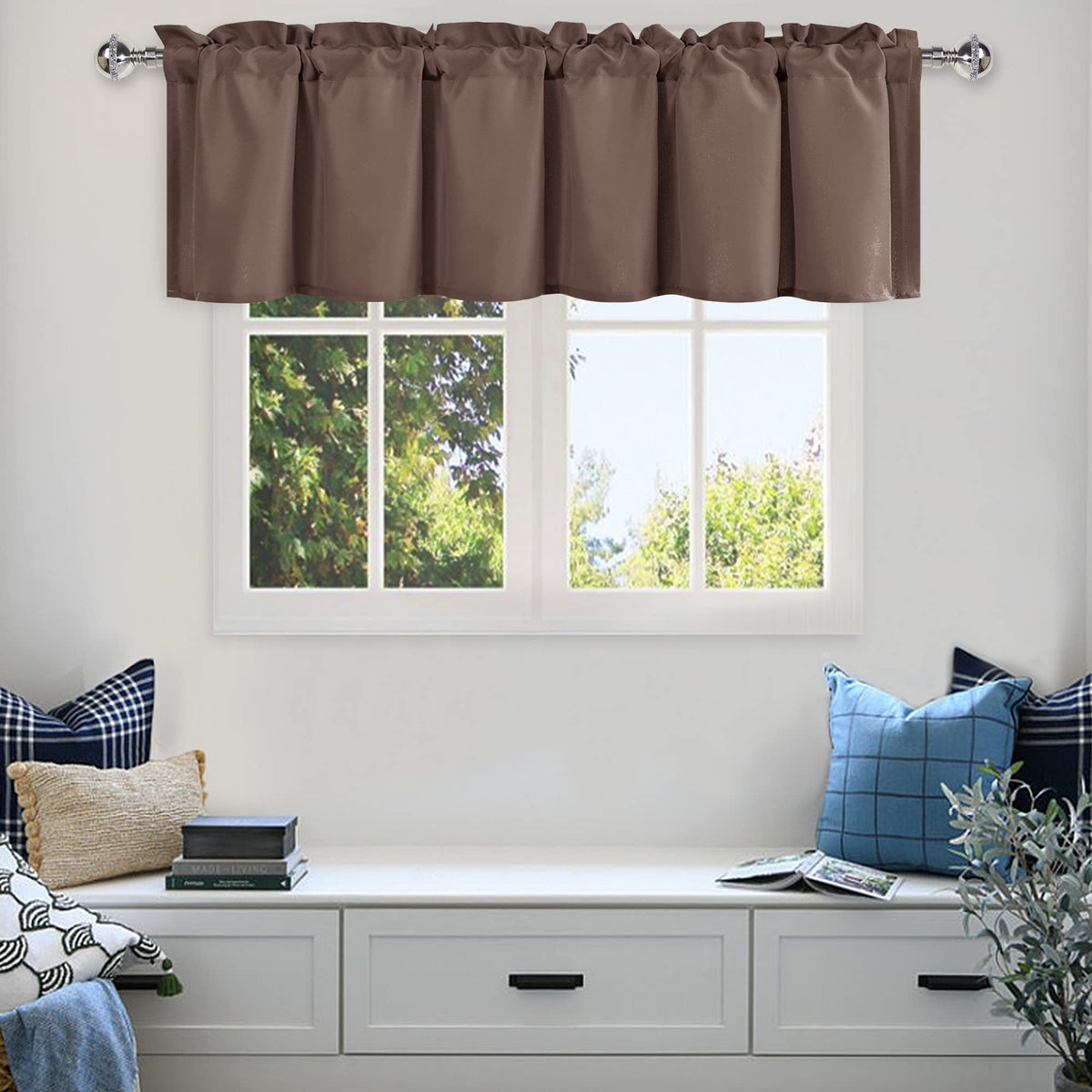 Dwcn Kitchen Valance Solid Short Topper, Brown Valance Curtains For Living Room, Rod Pocket Bathroom/Basement Window Curtains -
