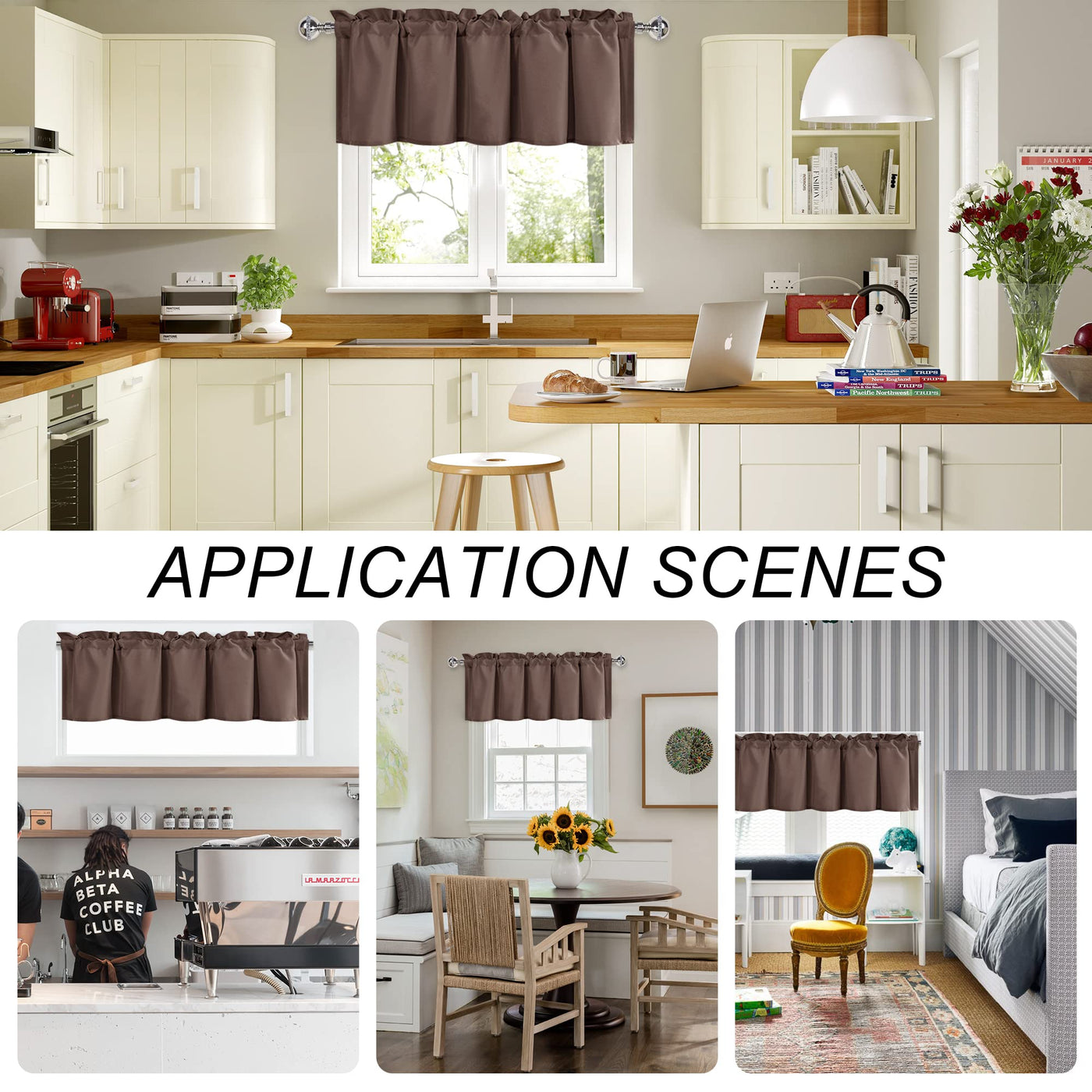 Q: Can the DWCN Kitchen Valance be used in different rooms?A: Yes, the valance's simple and elegant design makes it suitable for a variety of rooms, including kitchens, bathrooms, bedrooms, living rooms, and more.