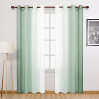 Dwcn Light Sage Faux Linen Ombre Sheer Curtains - 84 Inches Long Gradient Semi Voile Curtains For Bedroom And Living Room, Set O