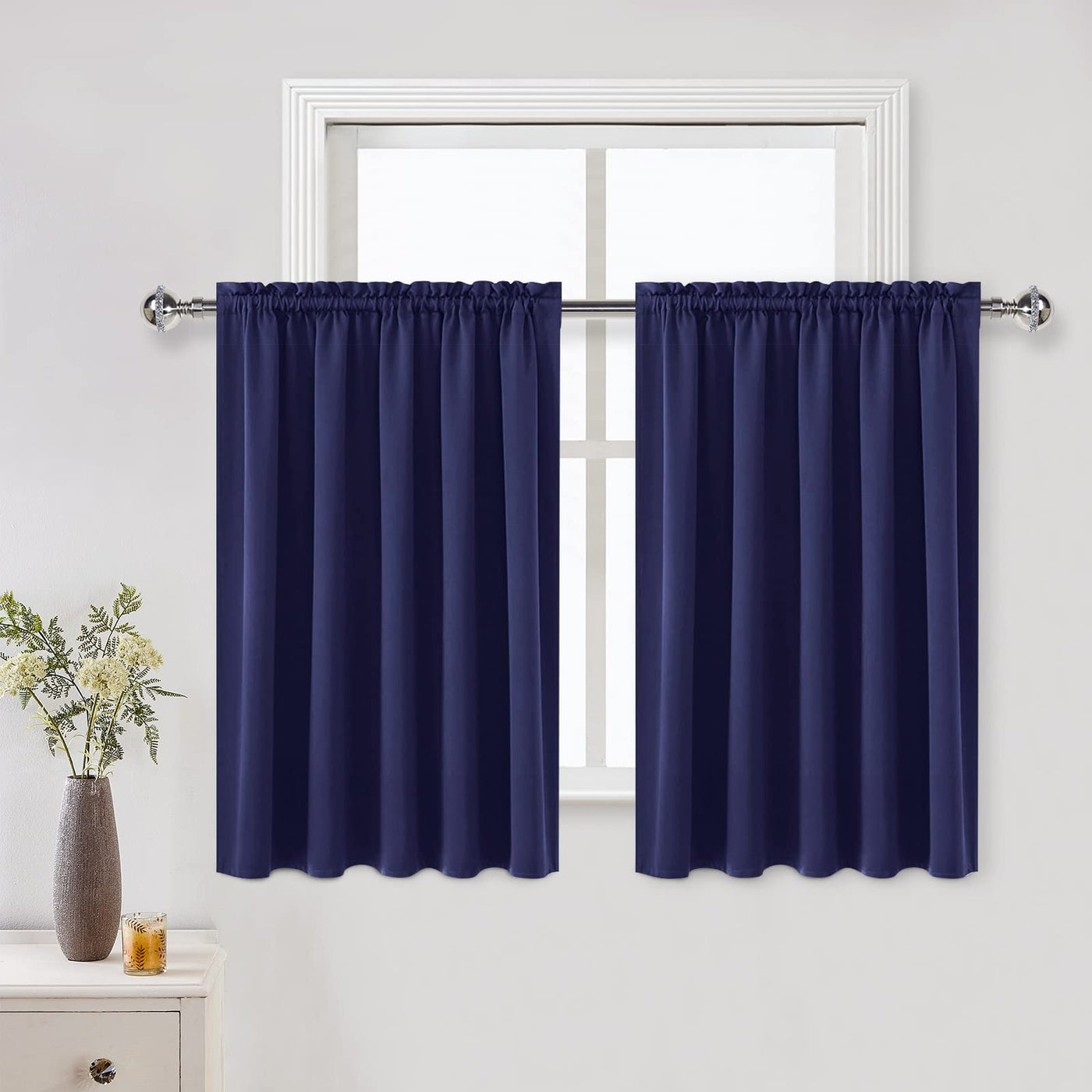 Dwcn Navy Blue Short Blackout Curtains For Bedroom, Thermal Insulated Energy Saving Room Darkening Curtains For Living Room (W60