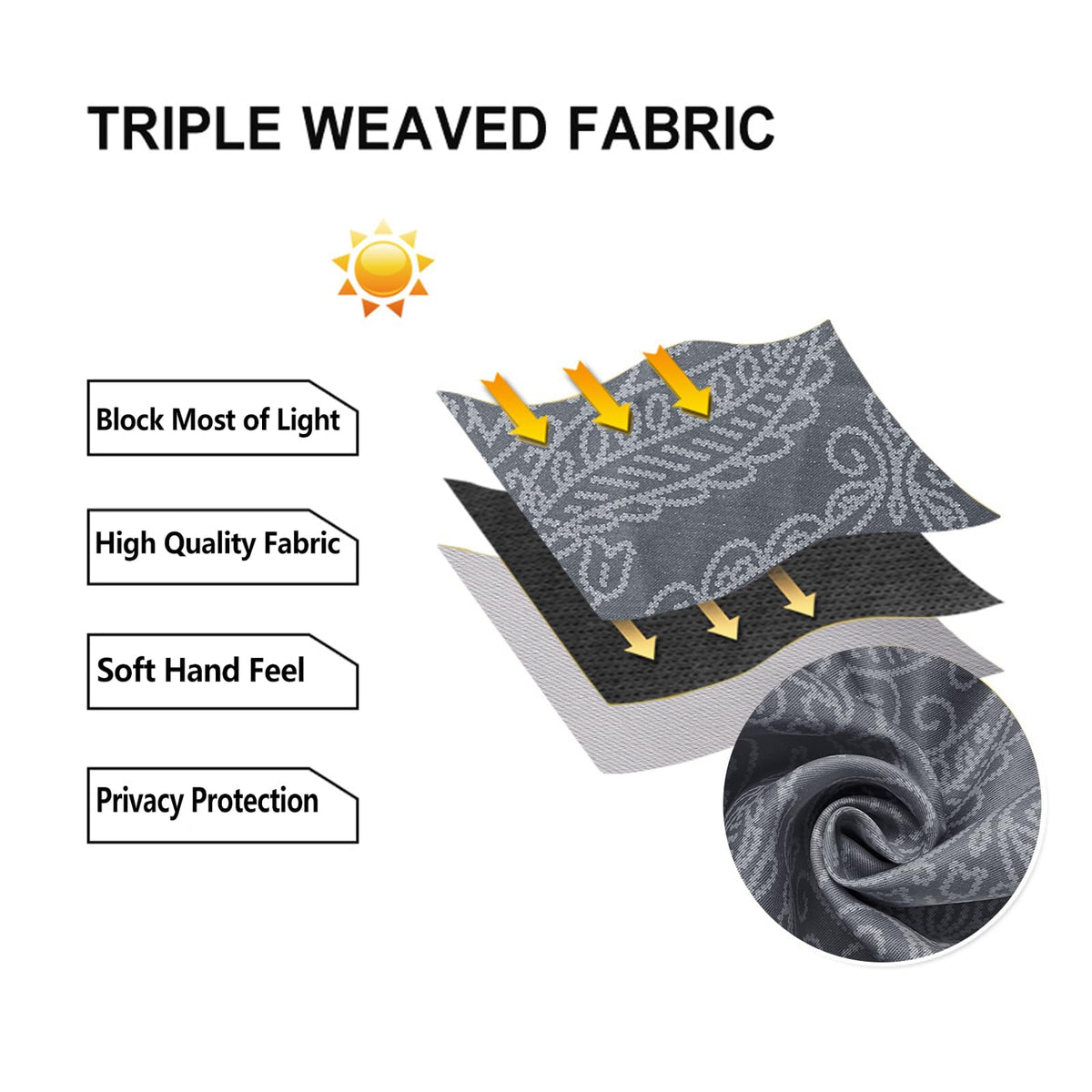 Q: What is the blackout performance of the DWCN Ombre Blackout Curtains?A: The DWCN Ombre Blackout Curtains are designed to block out 90%-99% of sunlight and harmful UV rays, thanks to their triple-weaved fabric construction. This feature allows you to control the amount of light entering your space effectively.