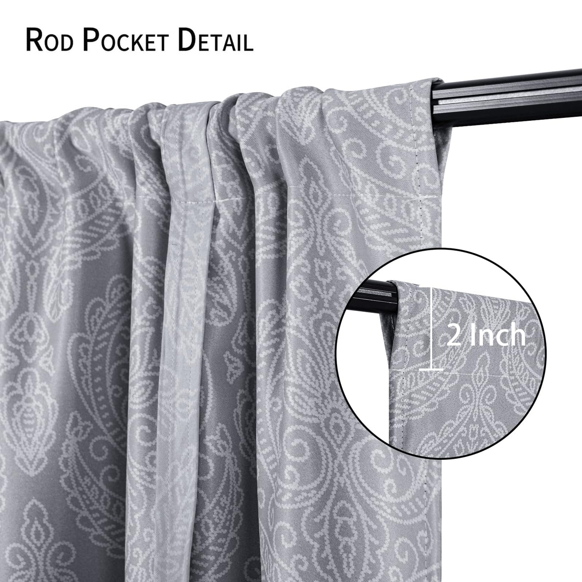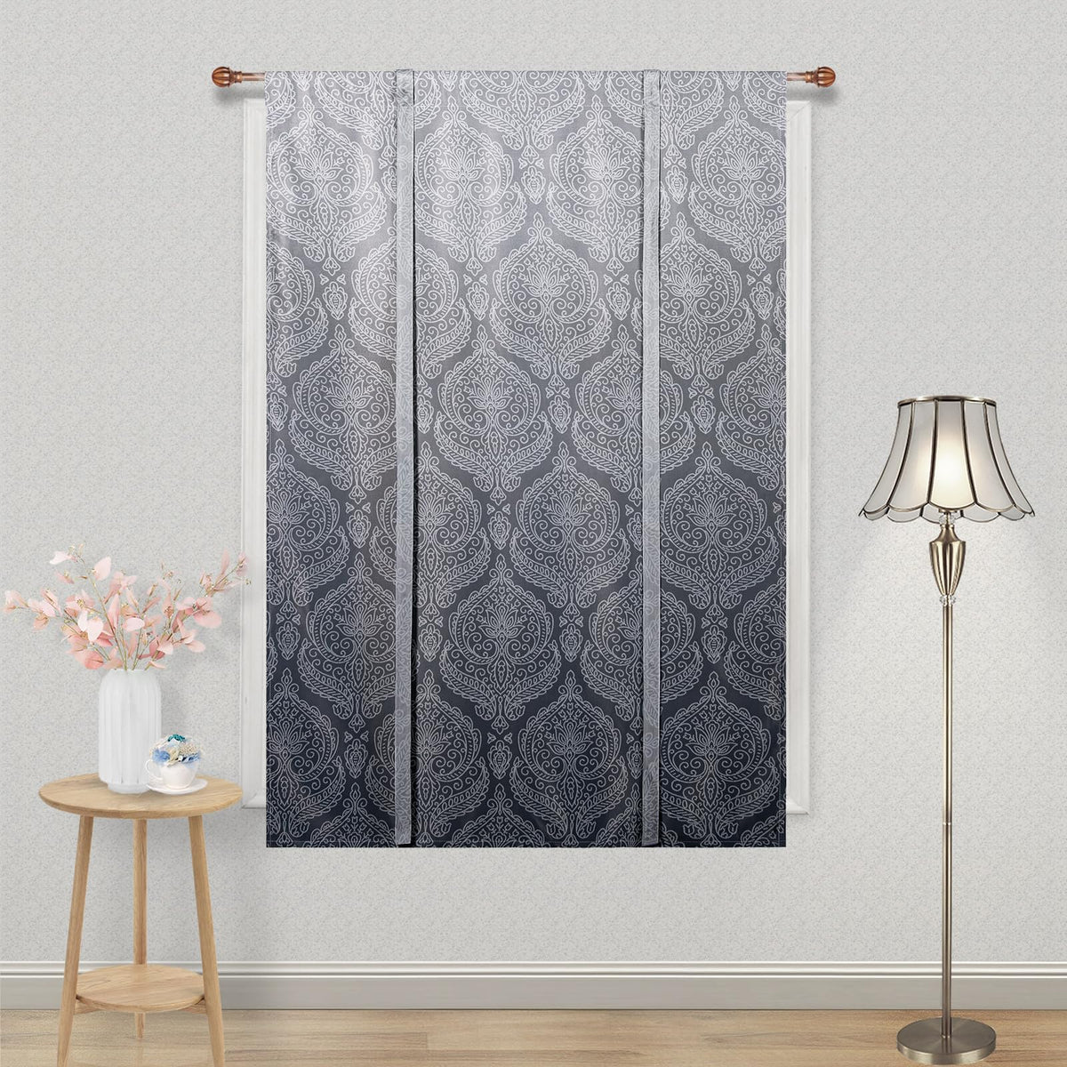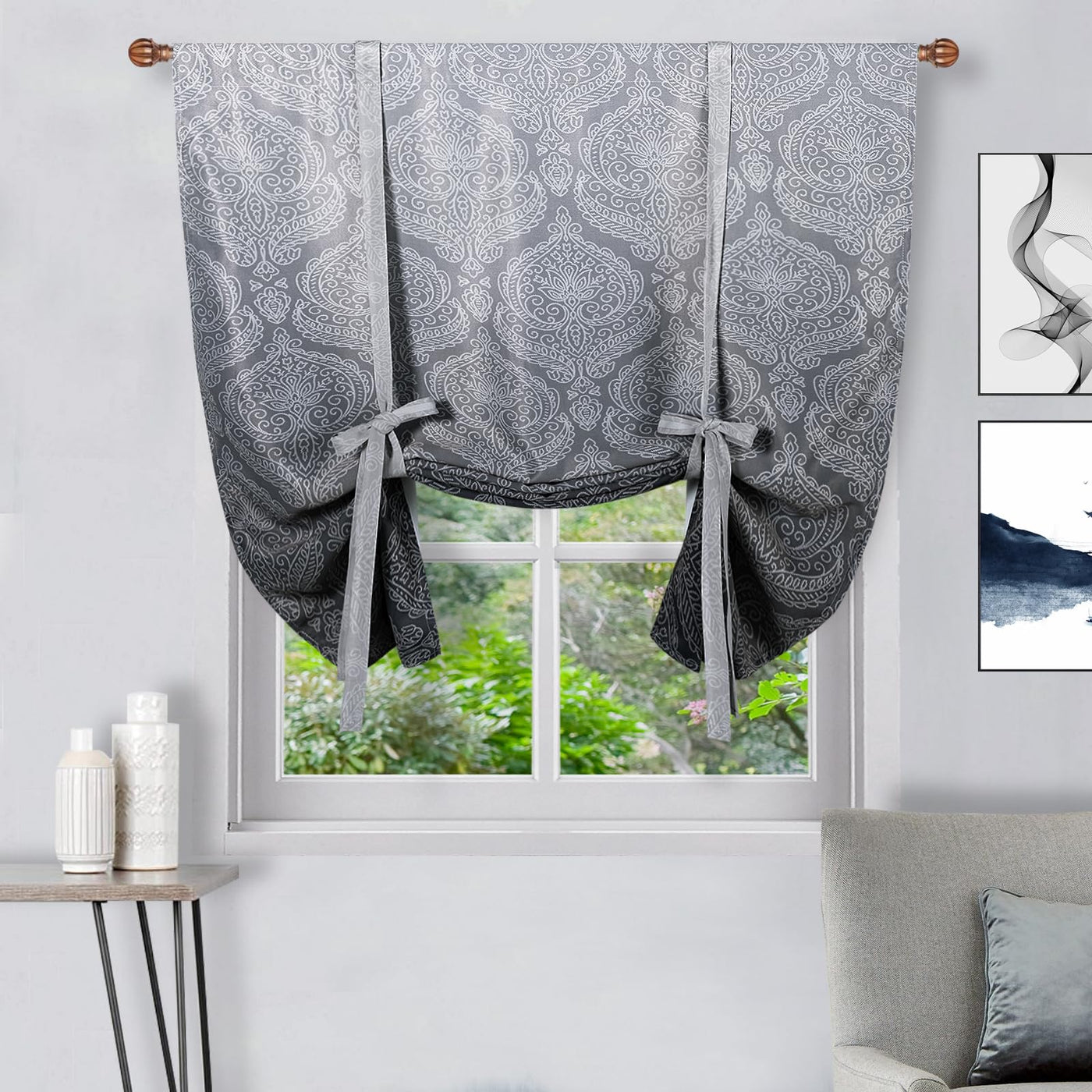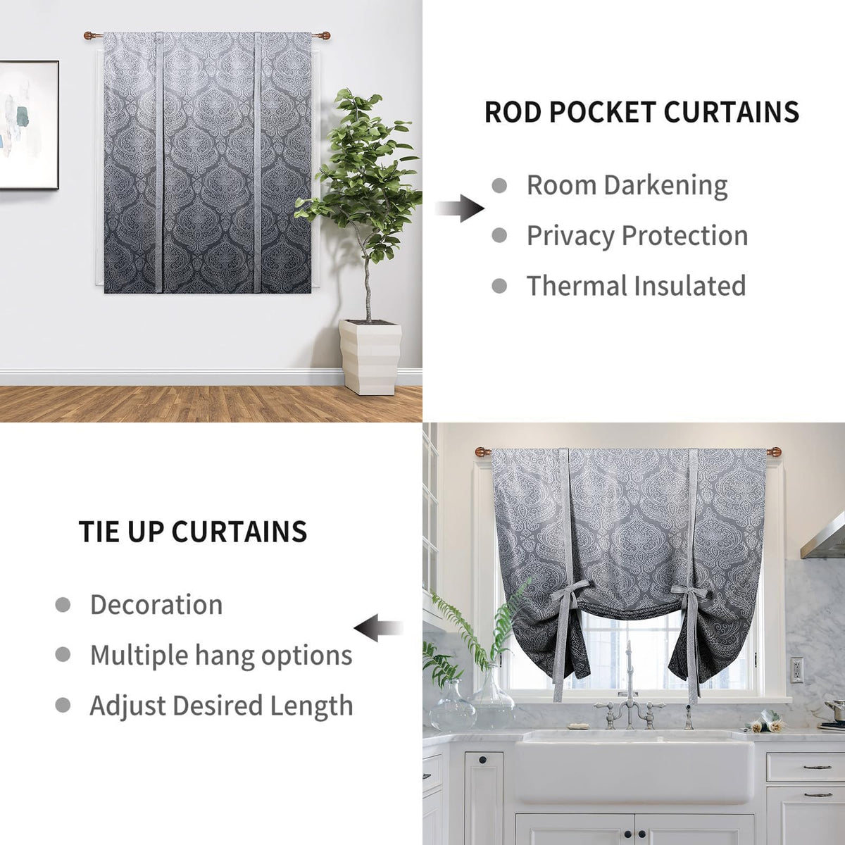 Dwcn Ombre Blackout Curtains-Damask Patterned Tie Up Shade For Window Thermal Insulated Room Darkening Rod Pocket Curtains For K