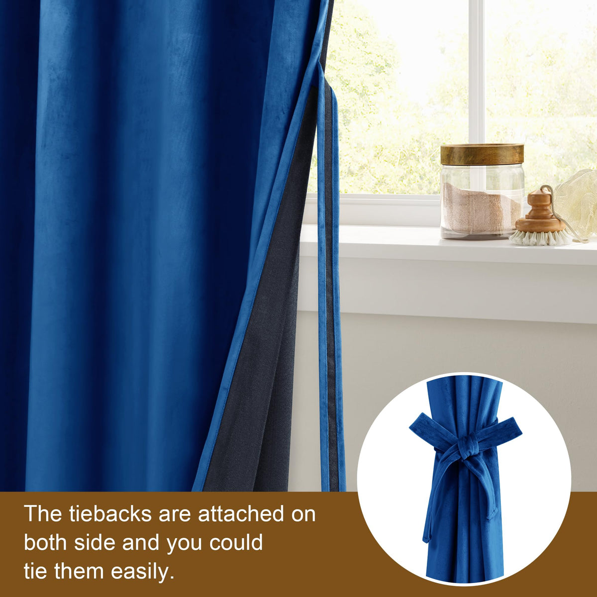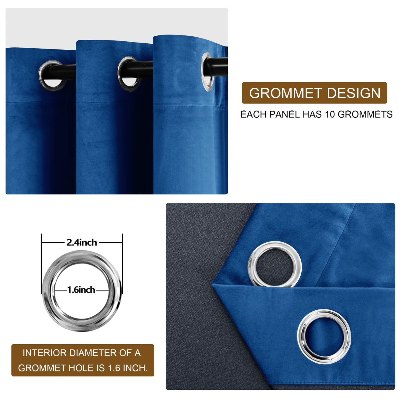Dwcn Velvet Curtains Extra Wide - Blue Blackout Privacy Protect Window Drapes Thick Grommet Tieable Light Blocking Curtains & Dr