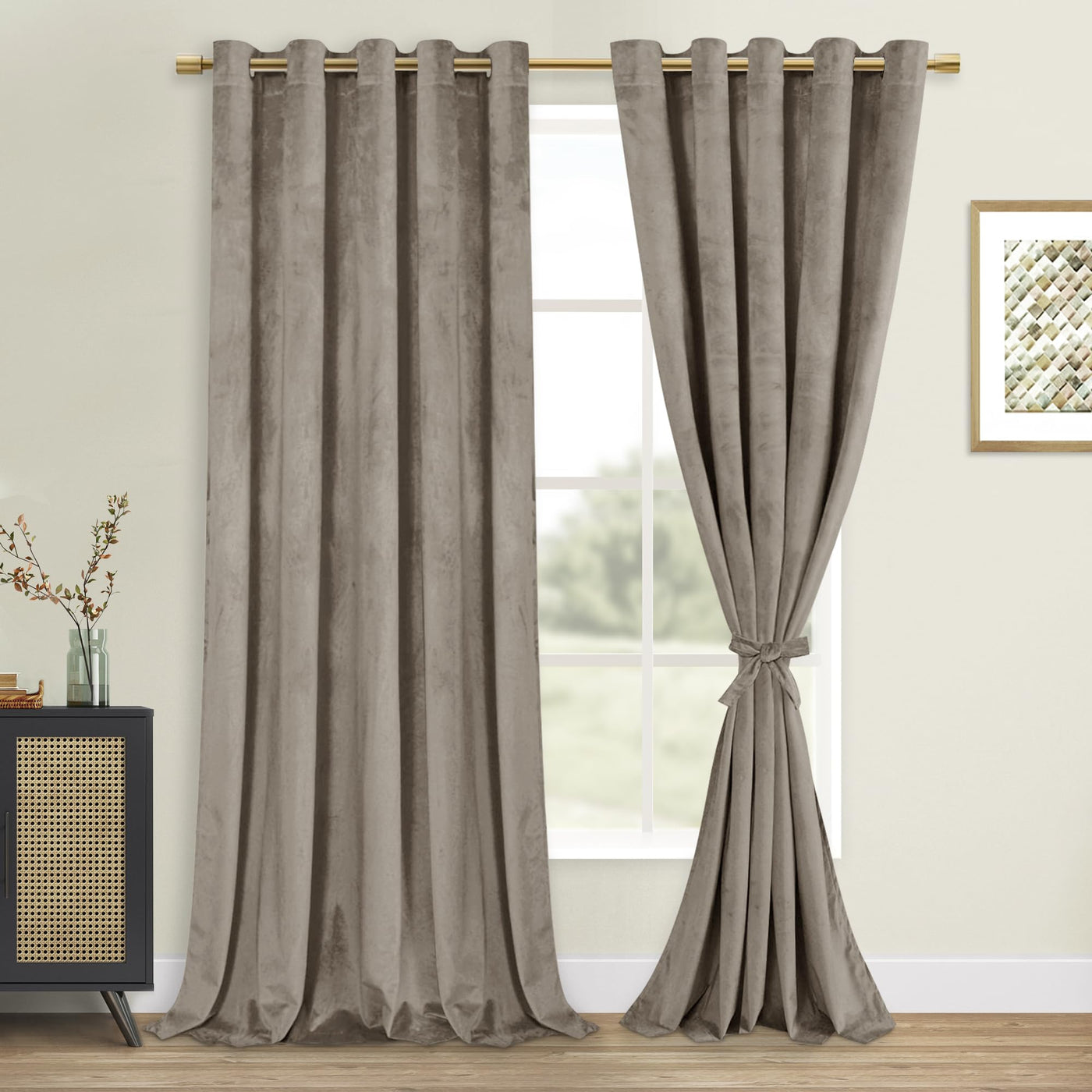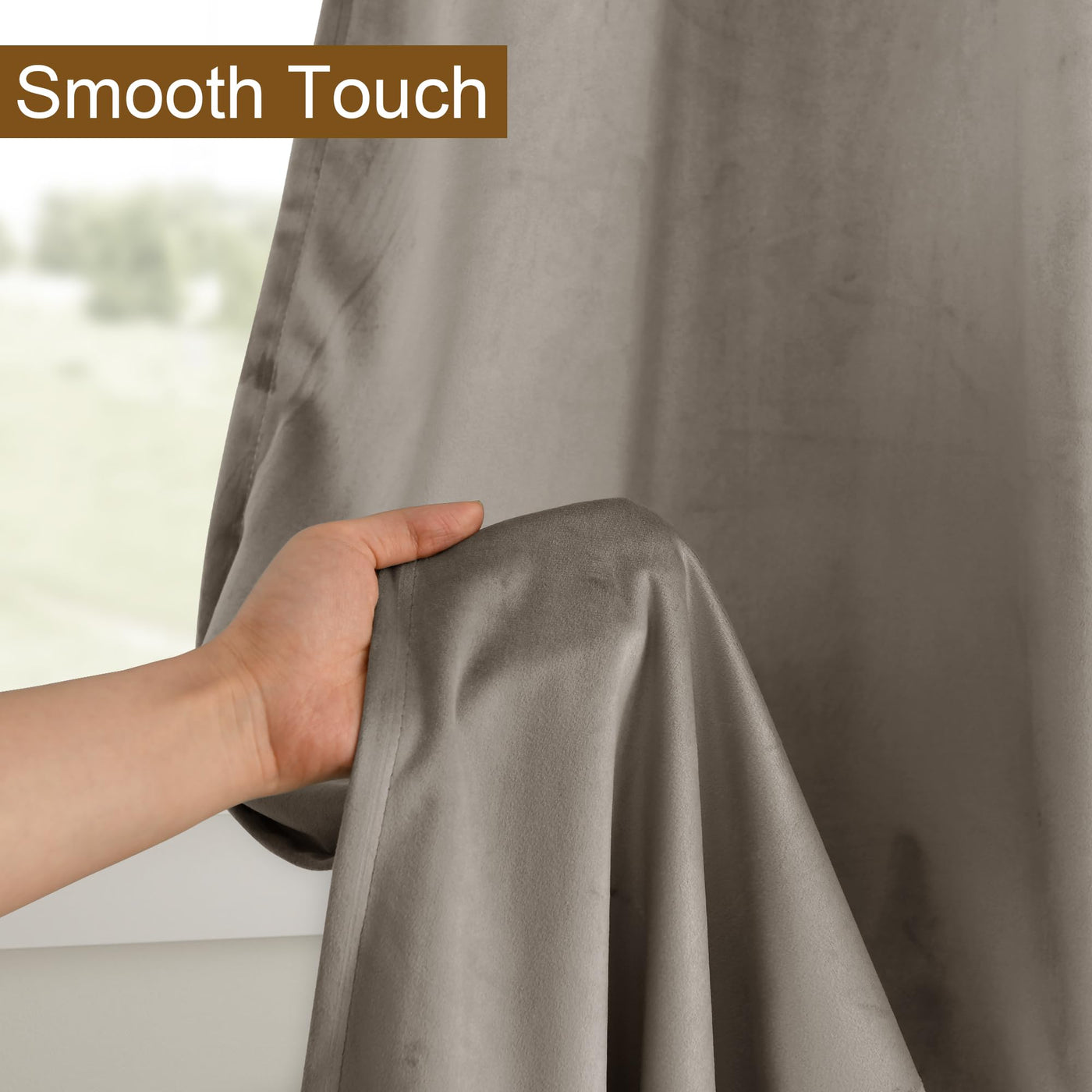 Dwcn Velvet Curtains Extra Wide - Taupe Elegant Super Soft Bundleable Room Darkening Window Curtains Grommet Design Neutral Styl