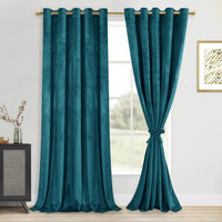 Dwcn Velvet Curtains Extra Wide - Teal Blackout Privacy Protect Window Drapes Thick Grommet Tieable Light Blocking Curtains & Dr