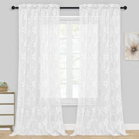 Dwcn White Sheer Curtains - Extra Long Floral Lace Design Rod Pocket Window Voile Sheer Drapes For Girls Bedroom Living Room 42