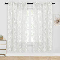 Dwcn White Sheer Curtains - Floral Lace Curtains 63 Inch Length Rod Pocket Window Voile Sheer Drapes For Bedroom Kitchen Short C