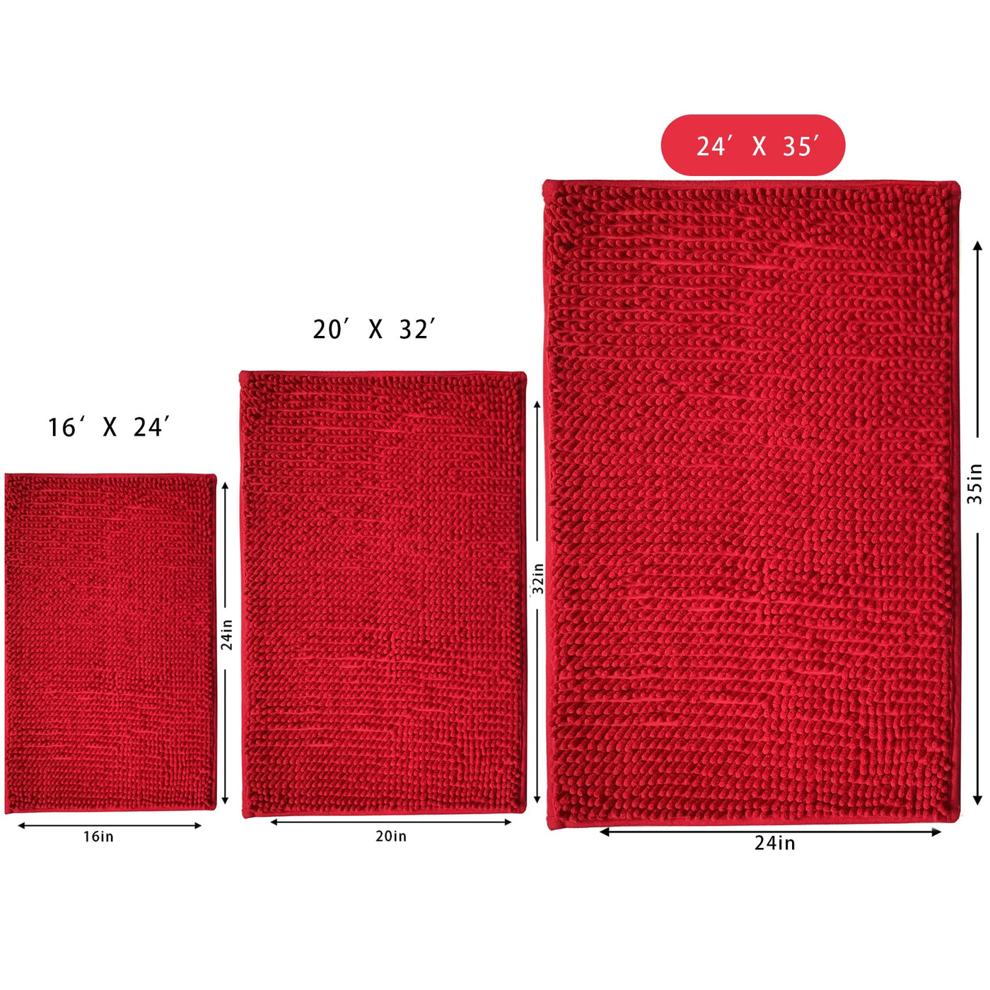 Q: What size is the Eanpet Chenille Bath Mat?A: The Eanpet Chenille Bath Mat measures 24 inches by 36 inches, which makes it a perfect fit for various bathroom spaces.