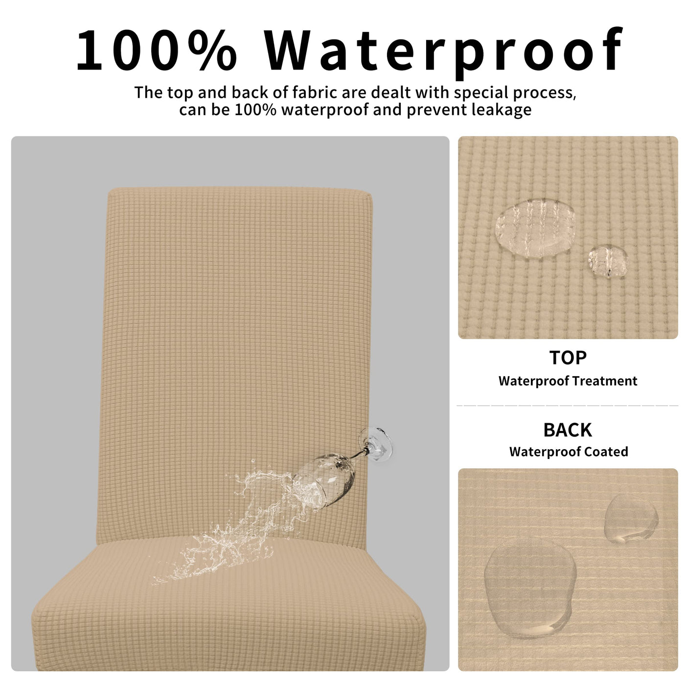 Easy-Going 100% Waterproof Dining Room Chair Cover Set Of 2, Stretch Jacquard Parson Chair Slipcover Removable Washable Chair Protector For Home, Restaurant, Banquet (Xlarge, Sand)