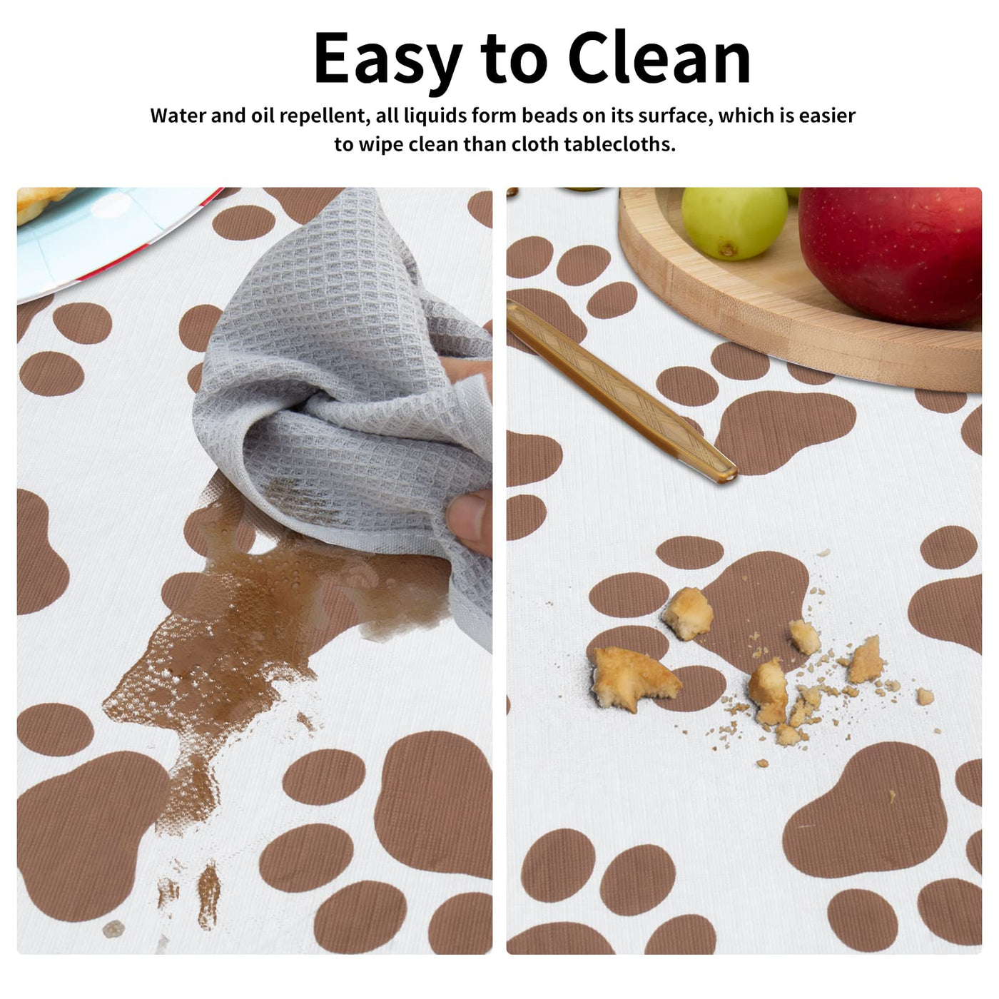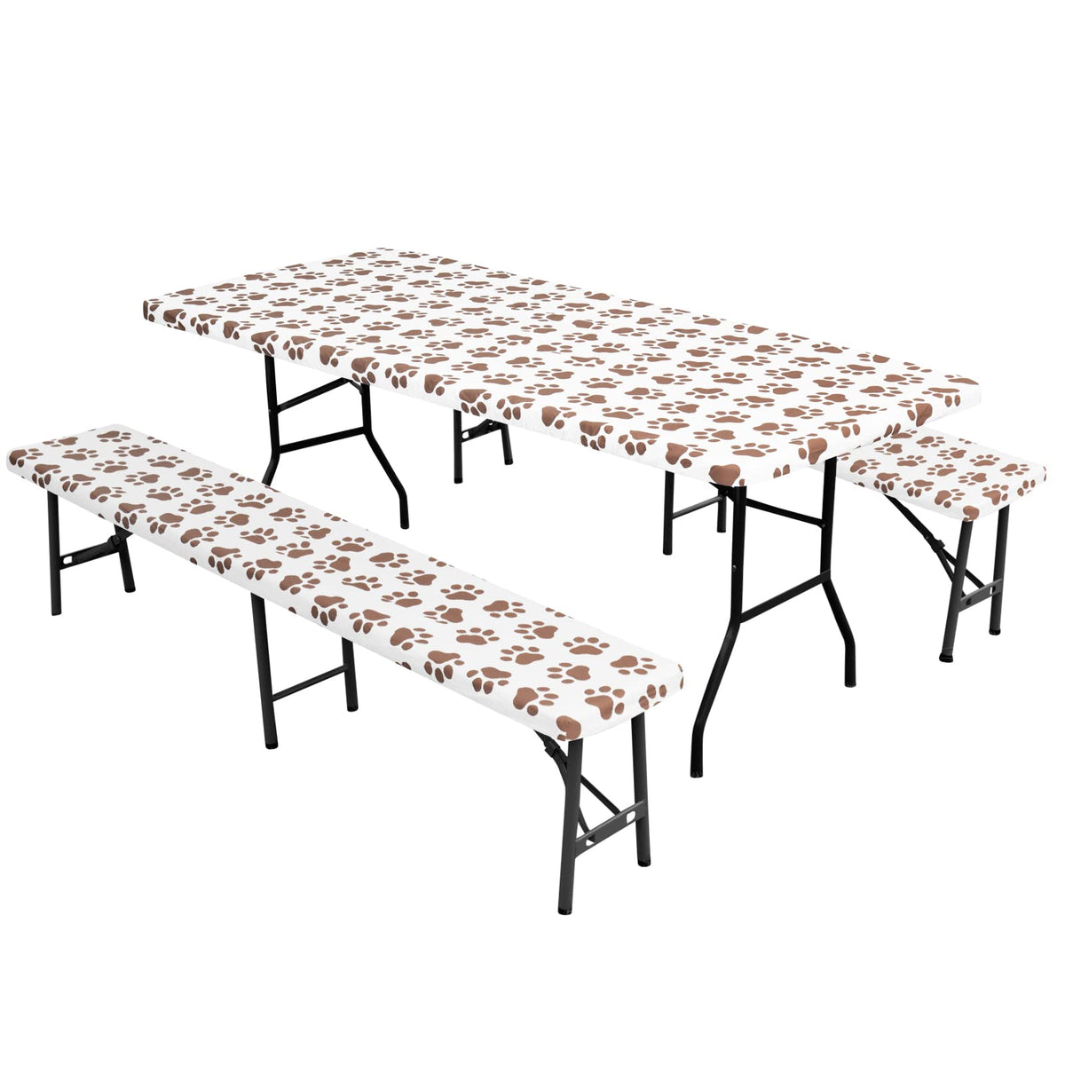 Easy-Going 100% Waterproof Picnic Outdoor Tablecloth With Bench Covers Fit 6 Foot Rectangle Table, 3-Piece Set Camping Table Cover With Seat Covers (30X72 In, Camel-Paw)