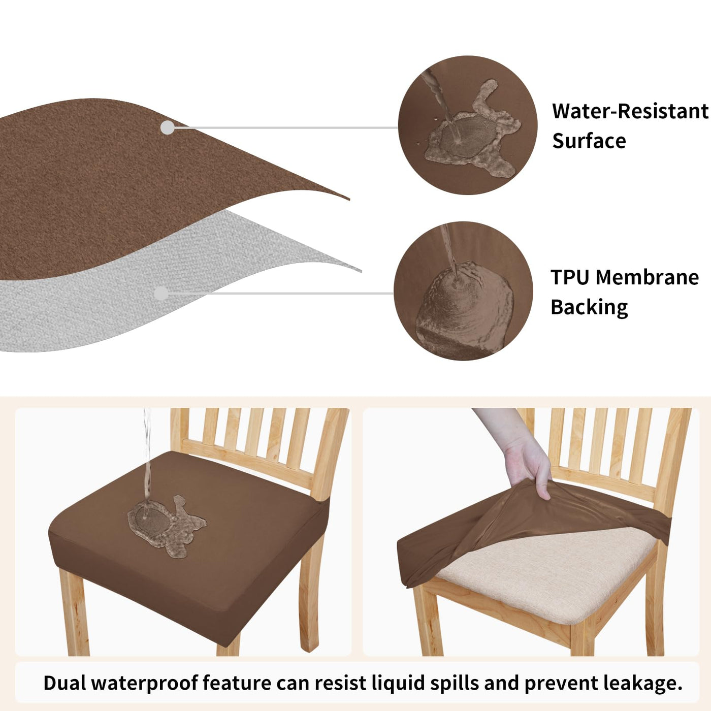 Easy-Going 100% Waterproof Seat Covers For Dining Room Chairs Set Of 4, Stretch Chair Seat Slipcovers Protector Removable And Washable Kitchen Dining Chair Covers, Brown