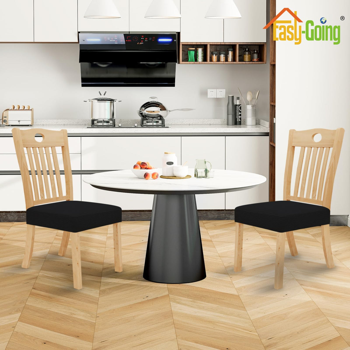 Easy-Going 100% Waterproof Seat Covers For Dining Room Chairs, Stretch Jacquard Chair Seat Slipcovers Removable And Washable Kitchen Dining Chair Covers (Set Of 2, Black)