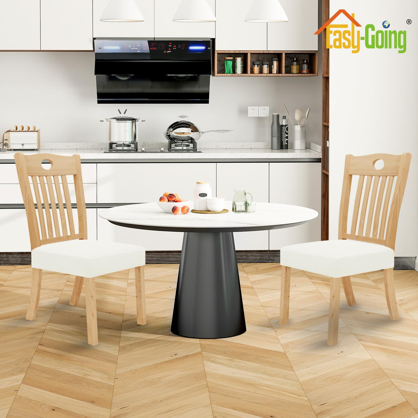 Easy-Going 100% Waterproof Seat Covers For Dining Room Chairs, Stretch Jacquard Chair Seat Slipcovers Removable And Washable Kitchen Dining Chair Covers (Set Of 2, Cream)
