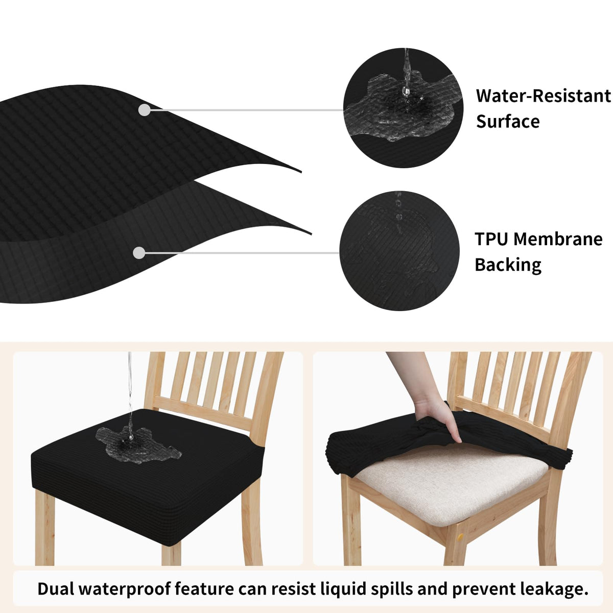 Easy-Going 100% Waterproof Seat Covers For Dining Room Chairs, Stretch Jacquard Chair Seat Slipcovers Removable And Washable Kitchen Dining Chair Covers (Set Of 8, Black)