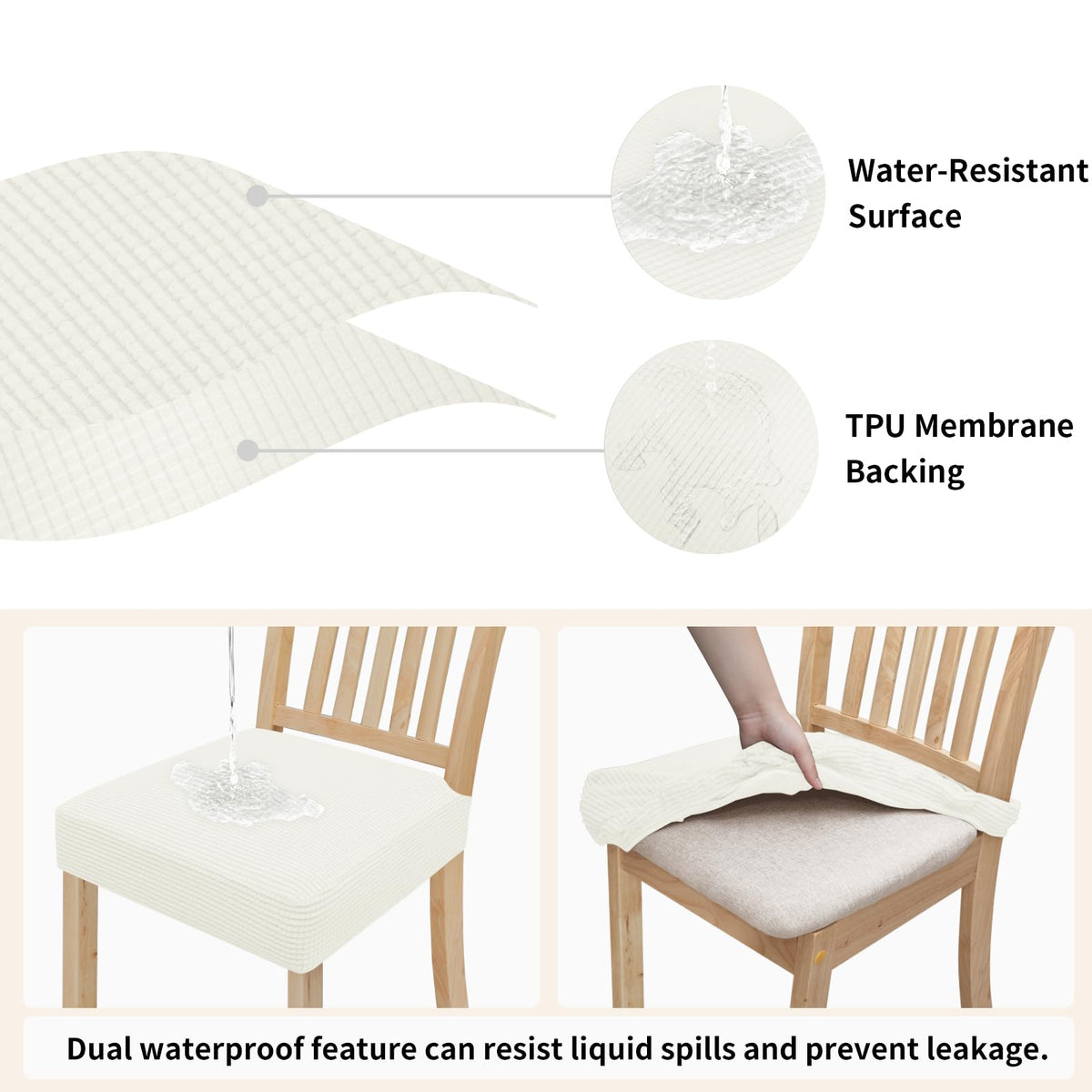 Easy-Going 100% Waterproof Seat Covers For Dining Room Chairs, Stretch Jacquard Chair Seat Slipcovers Removable And Washable Kitchen Dining Chair Covers (Set Of 8, Cream)