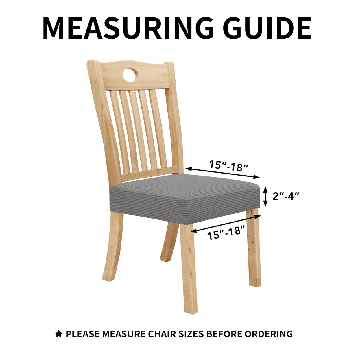 Easy-Going 100% Waterproof Seat Covers For Dining Room Chairs, Stretch Jacquard Chair Seat Slipcovers Removable And Washable Kitchen Dining Chair Covers (Set Of 8, Light Gray)