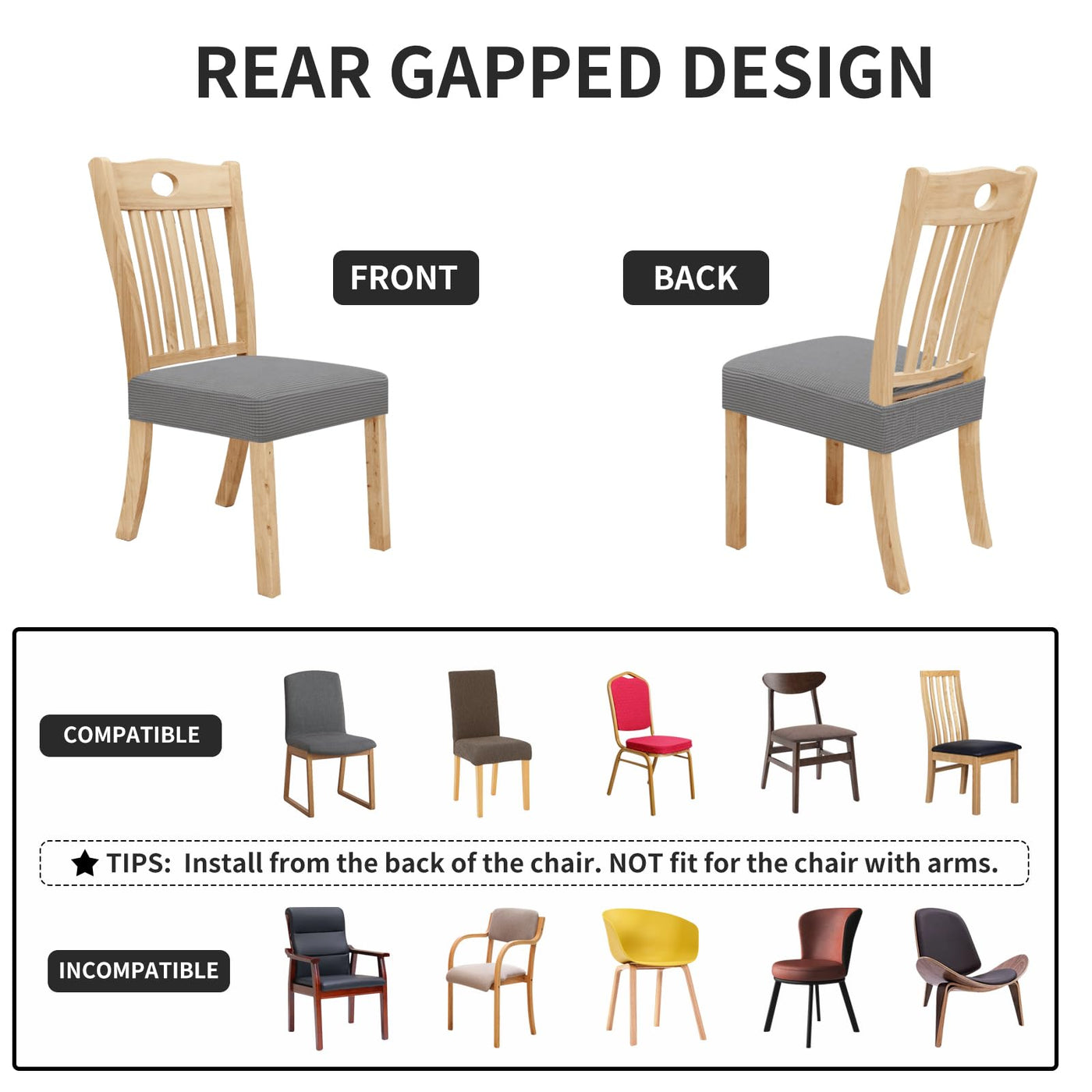 2.Rear-gapped design is very easy to install, no need to remove the chair cushions.