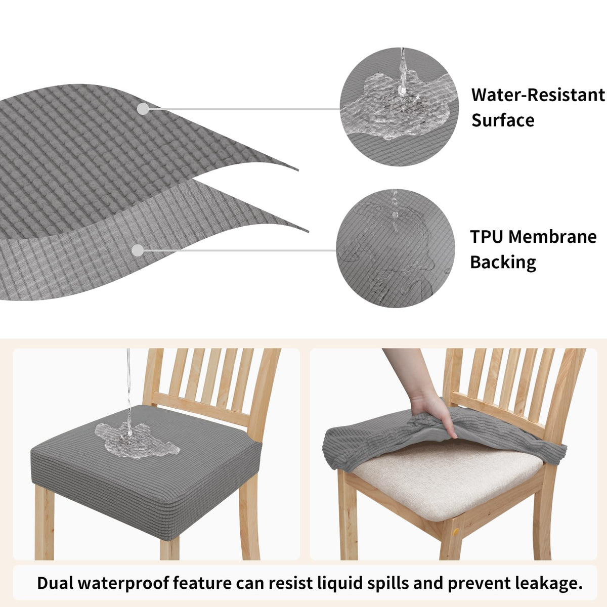 1.Dual waterproof feature can resist liquid spills and prevent leakage, to better protect your favorite furniture.