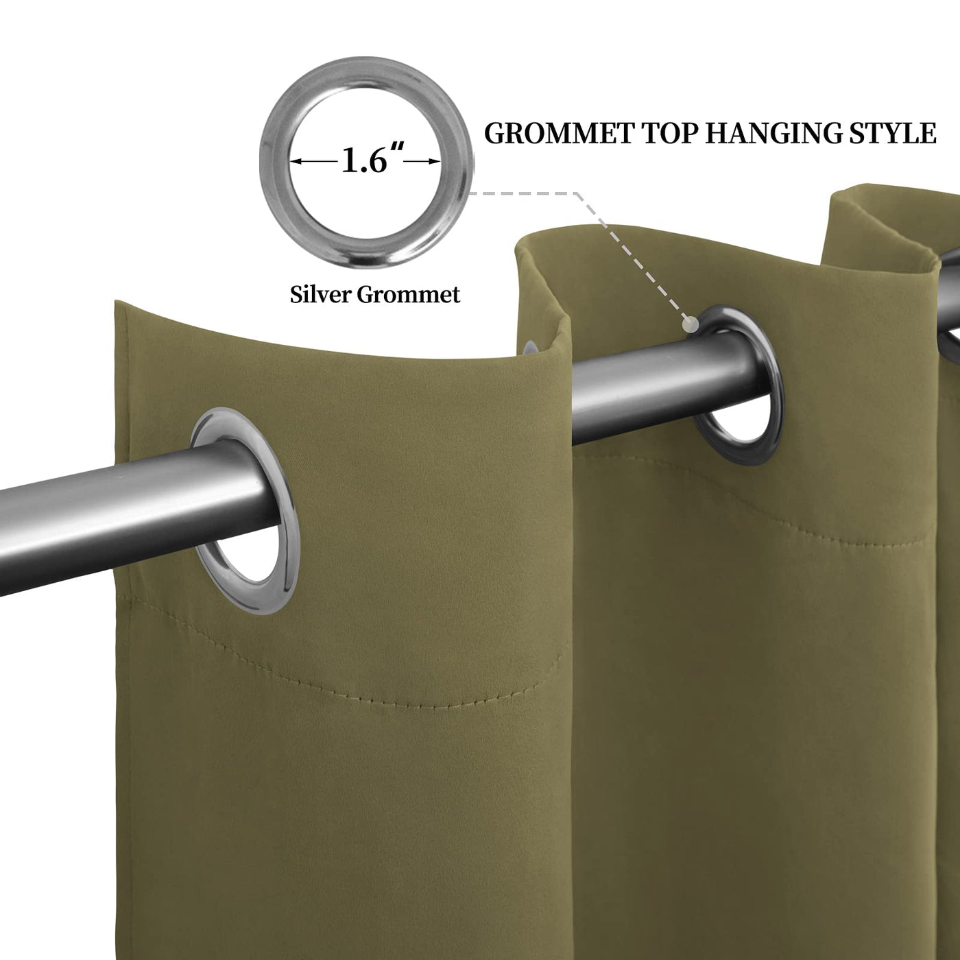 Easy-Going Blackout Curtains For Bedroom, Solid Thermal Insulated Grommet And Noise Reduction Window Drapes, Room Darkening Curtains For Living Room, 2 Panels (52X96 In,Khaki)