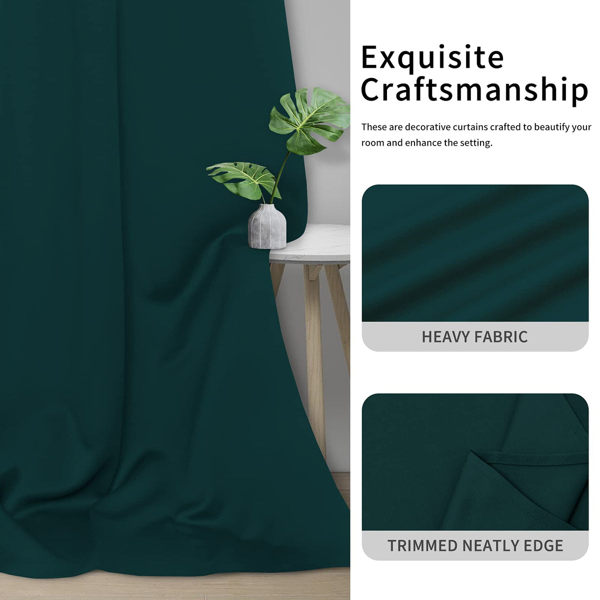 Easy-Going Blackout Curtains For Bedroom, Solid Thermal Insulated Grommet And Noise Reduction Window Drapes, Room Darkening Curtains For Living Room, 2 Panels(42X63 In, Deep Teal)