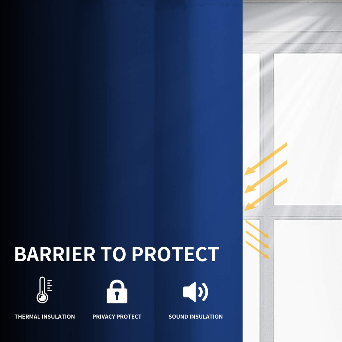 Easy-Going Blackout Curtains For Bedroom, Solid Thermal Insulated Grommet And Noise Reduction Window Drapes, Room Darkening Curtains For Living Room, 2 Panels(52X63 In,Classic Blue)