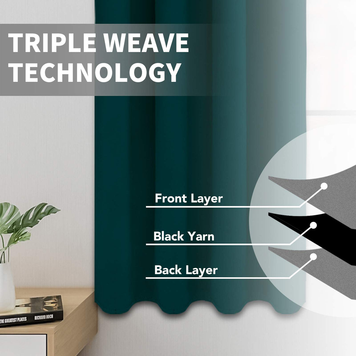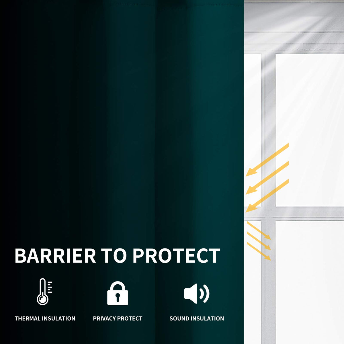 Easy-Going Blackout Curtains For Bedroom, Solid Thermal Insulated Grommet And Noise Reduction Window Drapes, Room Darkening Curtains For Living Room, 2 Panels(52X63 In,Deep Teal)
