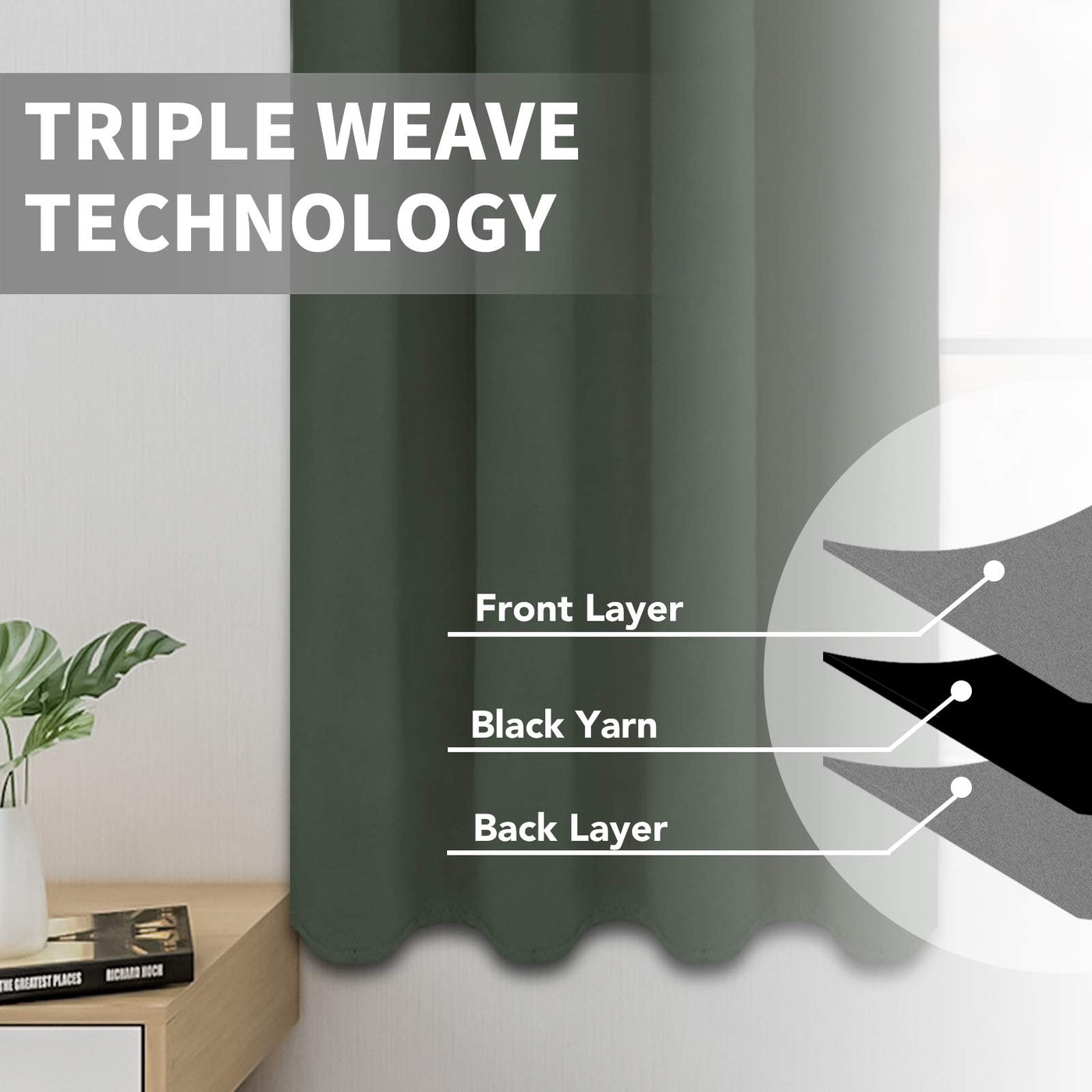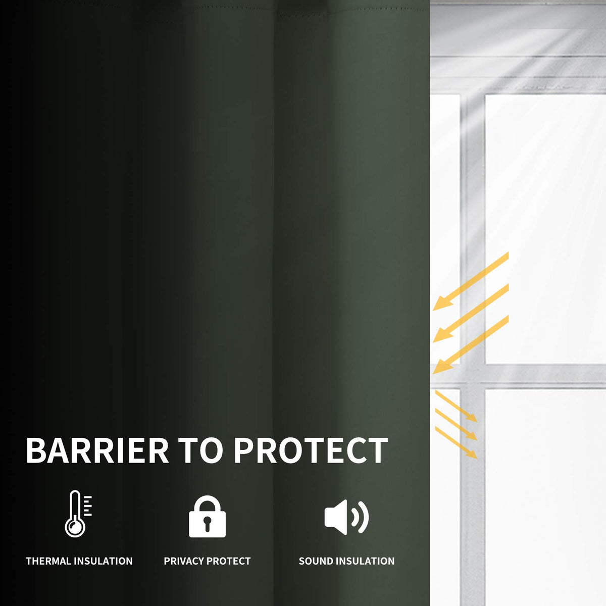 Easy-Going Blackout Curtains For Bedroom, Solid Thermal Insulated Grommet And Noise Reduction Window Drapes, Room Darkening Curtains For Living Room, 2 Panels(52X63 In,Greyish Green)