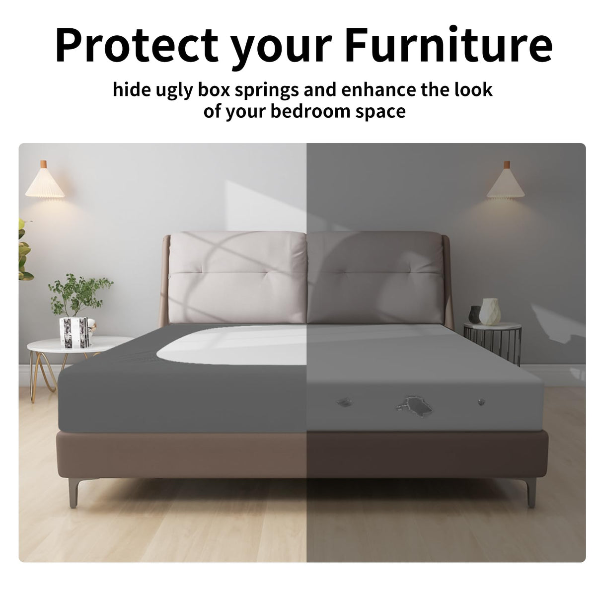 Easy-Going Box Spring Cover Queen Size, 4 Way Stretch Smooth And Elastic Wrap Around Band 4 Sides Bed Skirt, Gray