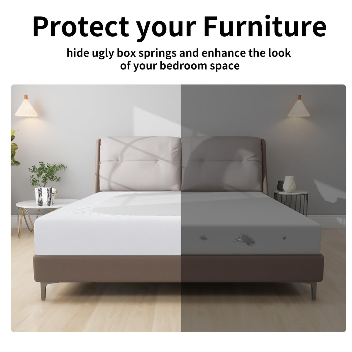 Easy-Going Box Spring Cover Queen Size, 4 Way Stretch Smooth And Elastic Wrap Around Band 4 Sides Bed Skirt, White