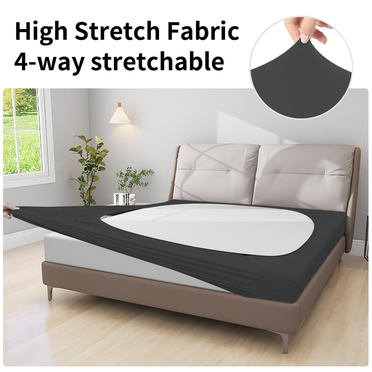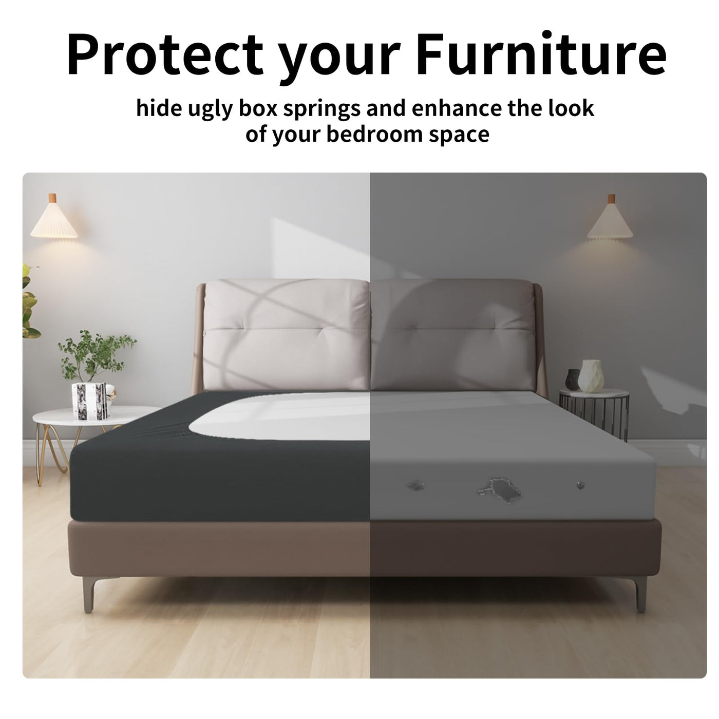Q: Is the fabric used in this box spring cover stretchy?A: Yes, the cover is made from high stretch fabric consisting of 90% polyester fiber and 10% spandex, ensuring a soft, elastic fit that wraps around the box spring snugly.