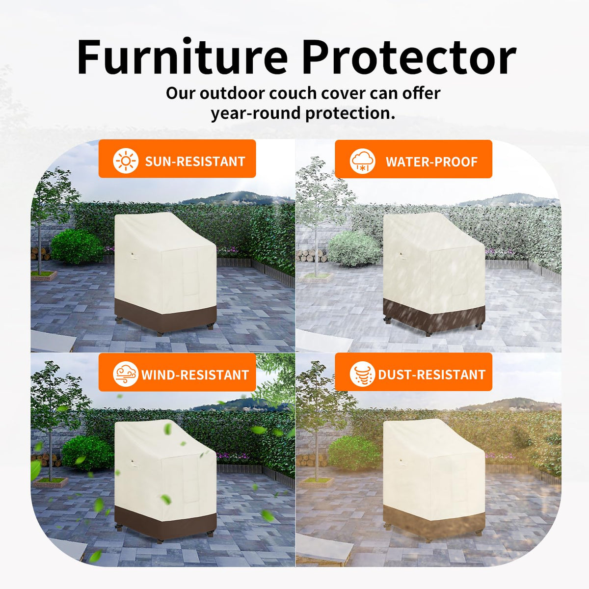 Easy-Going Heavy Duty Outdoor Stackable Chair Cover, Waterproof Patio Chair Cover, Windproof Outdoor Furniture Cover With Air Vent (2 Pack-28Wx36Dx47H Inch, Beige/Dark Brown)