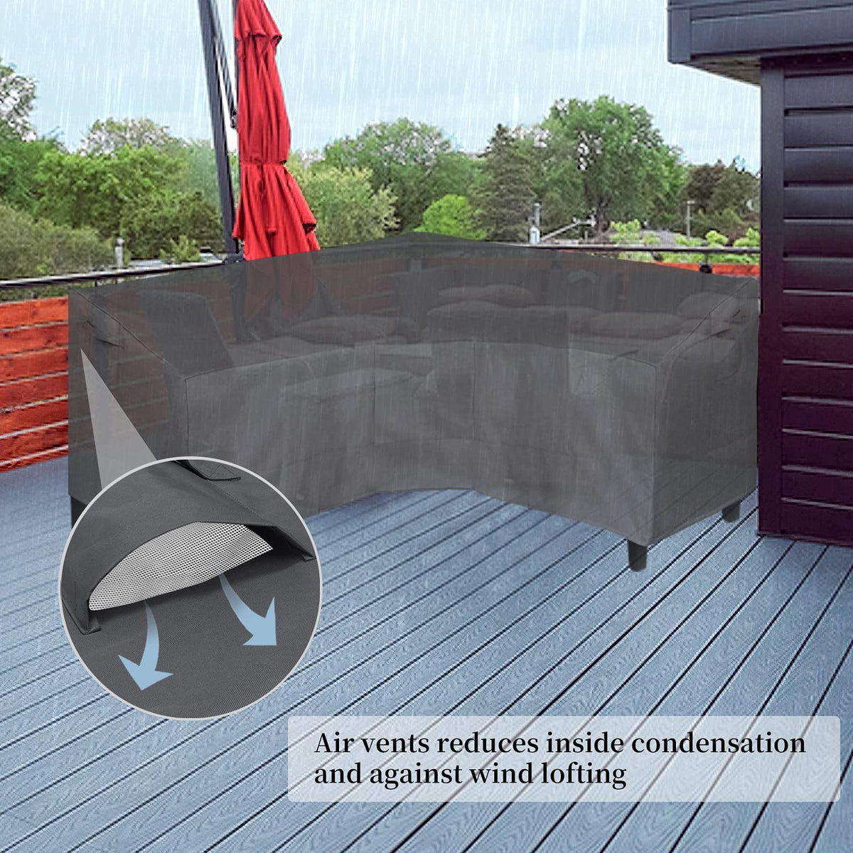 Easy-Going Patio V-Shaped Sectional Sofa Cover, Waterproof Outdoor Sectional Cover,Heavy Duty Garden Furniture Cover With Air Vent 118' L (On Each Side) X 33.5' D X 31' H, Dark Gray